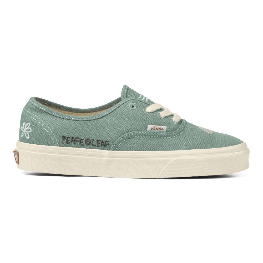 From 100% organically grown cotton canvas uppers to a responsibly sourced natural rubber outsole that still maintains the grip and durability that Vans has been known for since 1966, the Eco Theory Authentic combines environmental consciousness with the classic Vans style you love. This iconic lace-up shoe also includes metal eyelets, renewable jute laces, and embroidery.