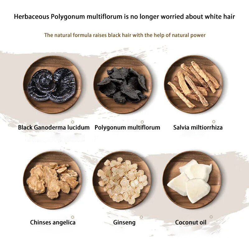 500ml White hair to black hair shampoo natural plant herb health nourishment hair root oily control harmless hair scalp promote hair growth gray hair shampoo treatment care hair darkening suitable for
