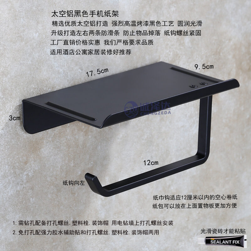 Punch-Free Tissue Box Toilet Black Tissue Holder Space Aluminum Toilet Roll Paper Tube Bathroom Wall Hanging Tissue Holder