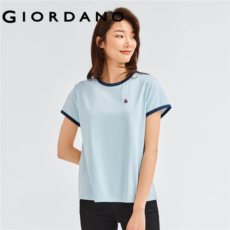 GIORDANO Women T-Shirts Exquisite Embroidery Casual T-Shirts 100% Cotton Classic Crewneck Short Sleeve Summer T-Shirts 05322395