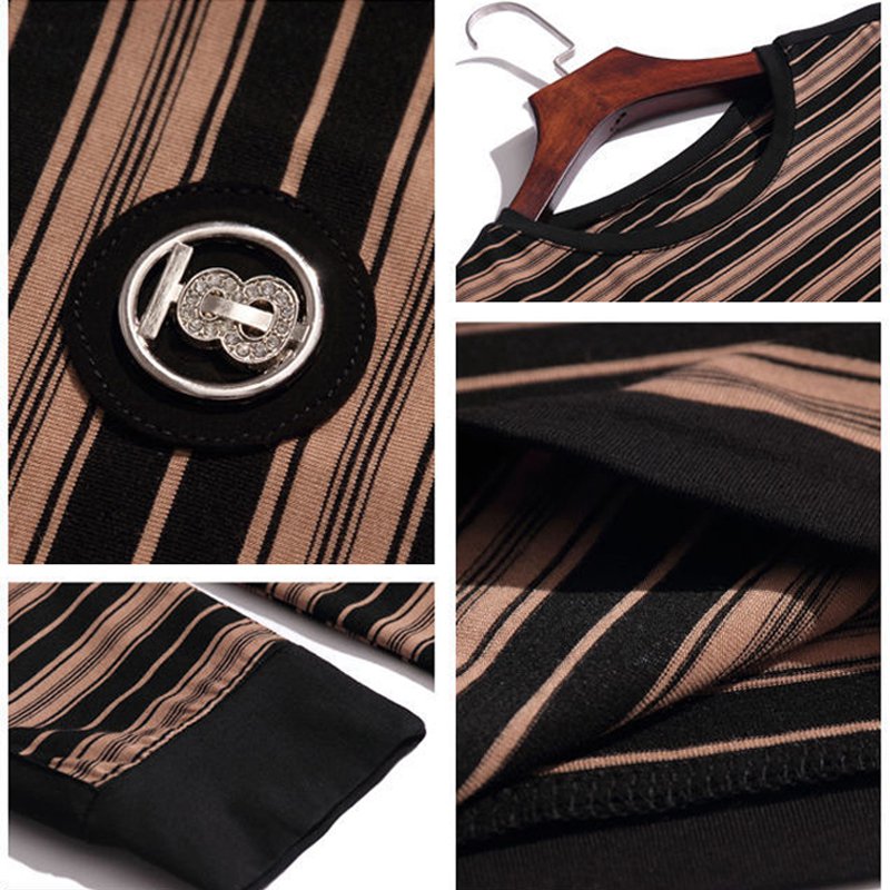INWPLLR Spring Women's T-shirts Stripe Long Sleeve Tops All-match O-Neck Large Size Tops Tee Female
