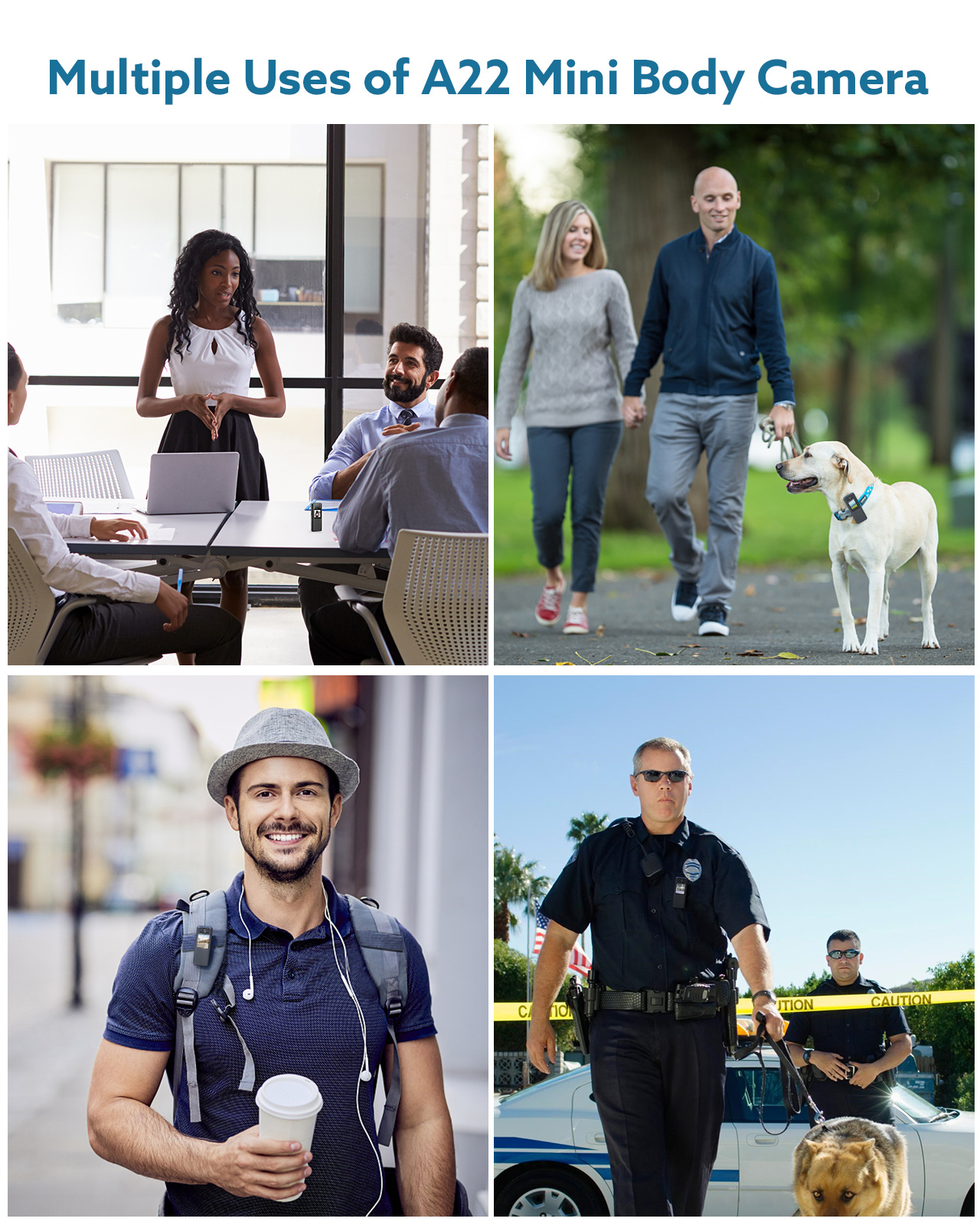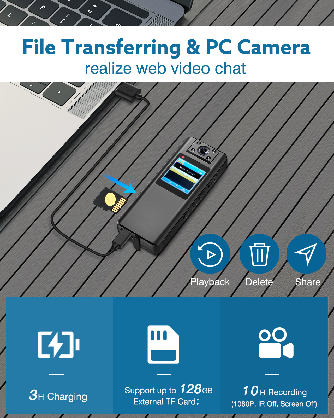 • A 1.3 inch LCD screen works for real-time viewing and managing the recorded videos/audios/photos on the mini body camera as you want, anytime anyplace.