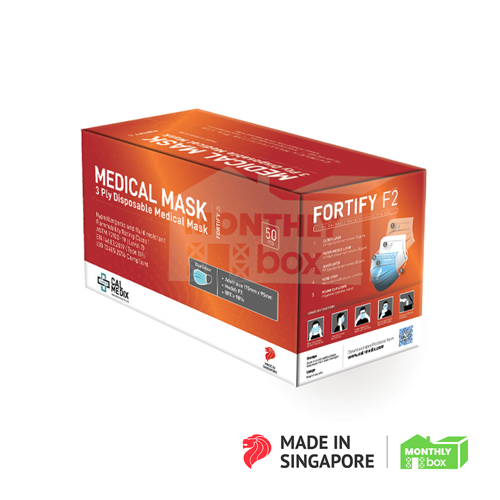 2x Medical Mask Made in Singapore,BFE > 98% [CAL-MEDIX 3 Ply]