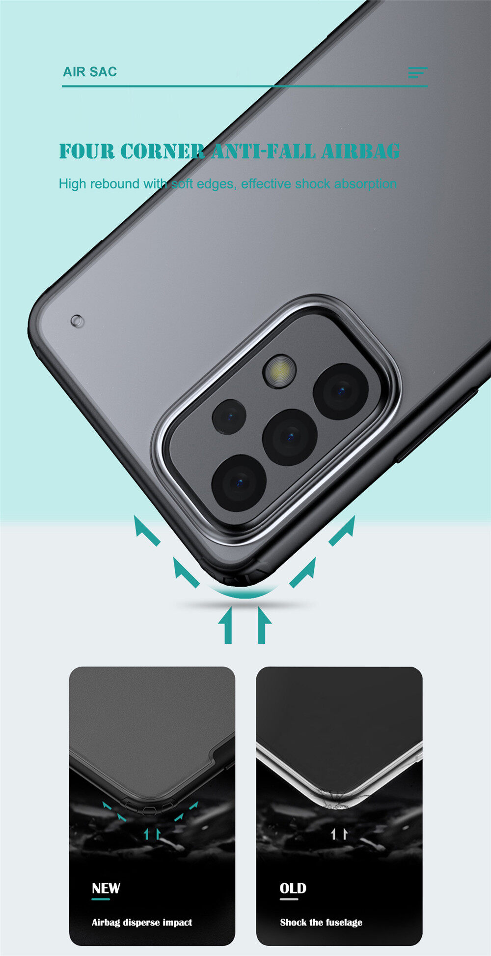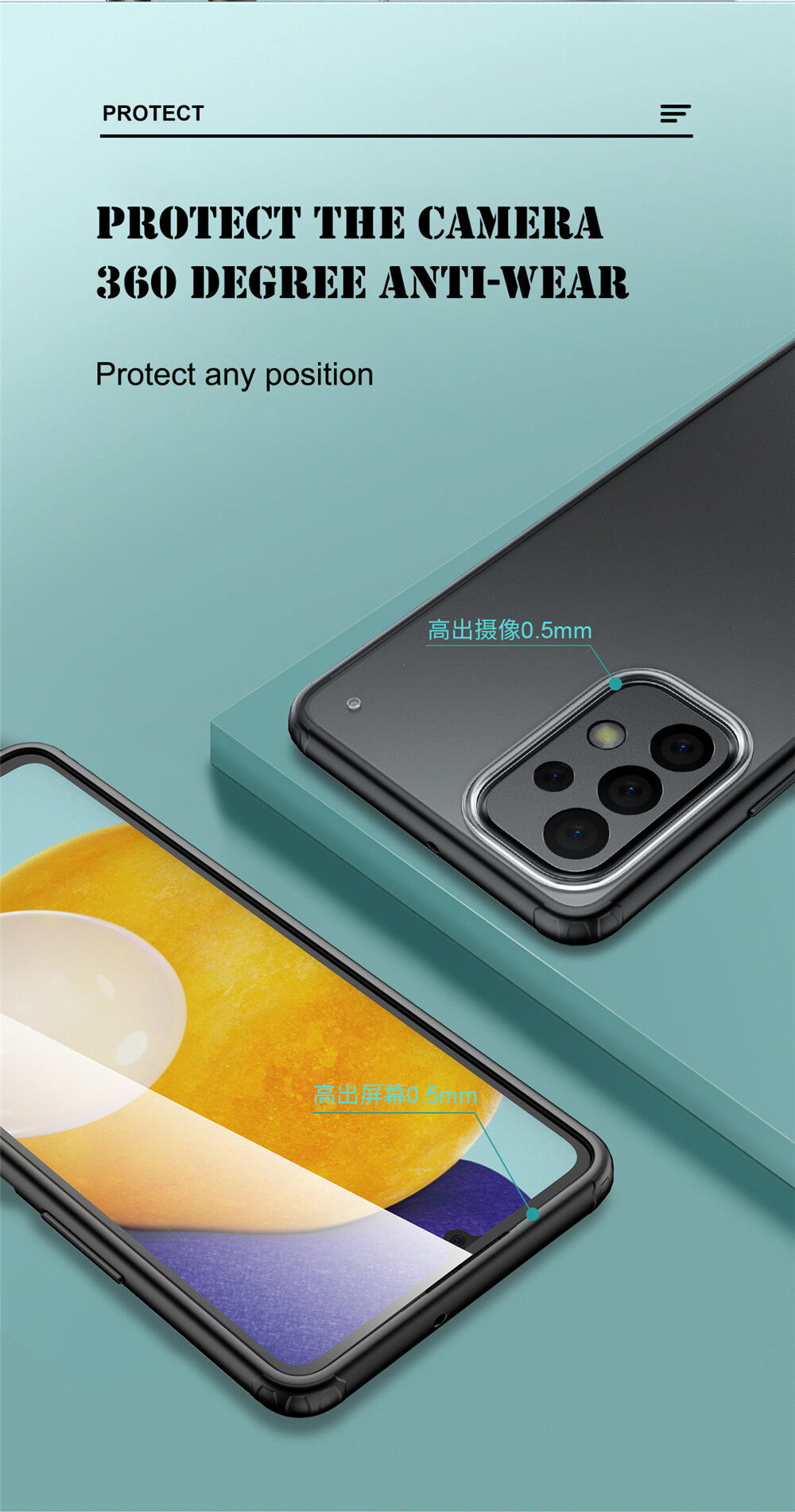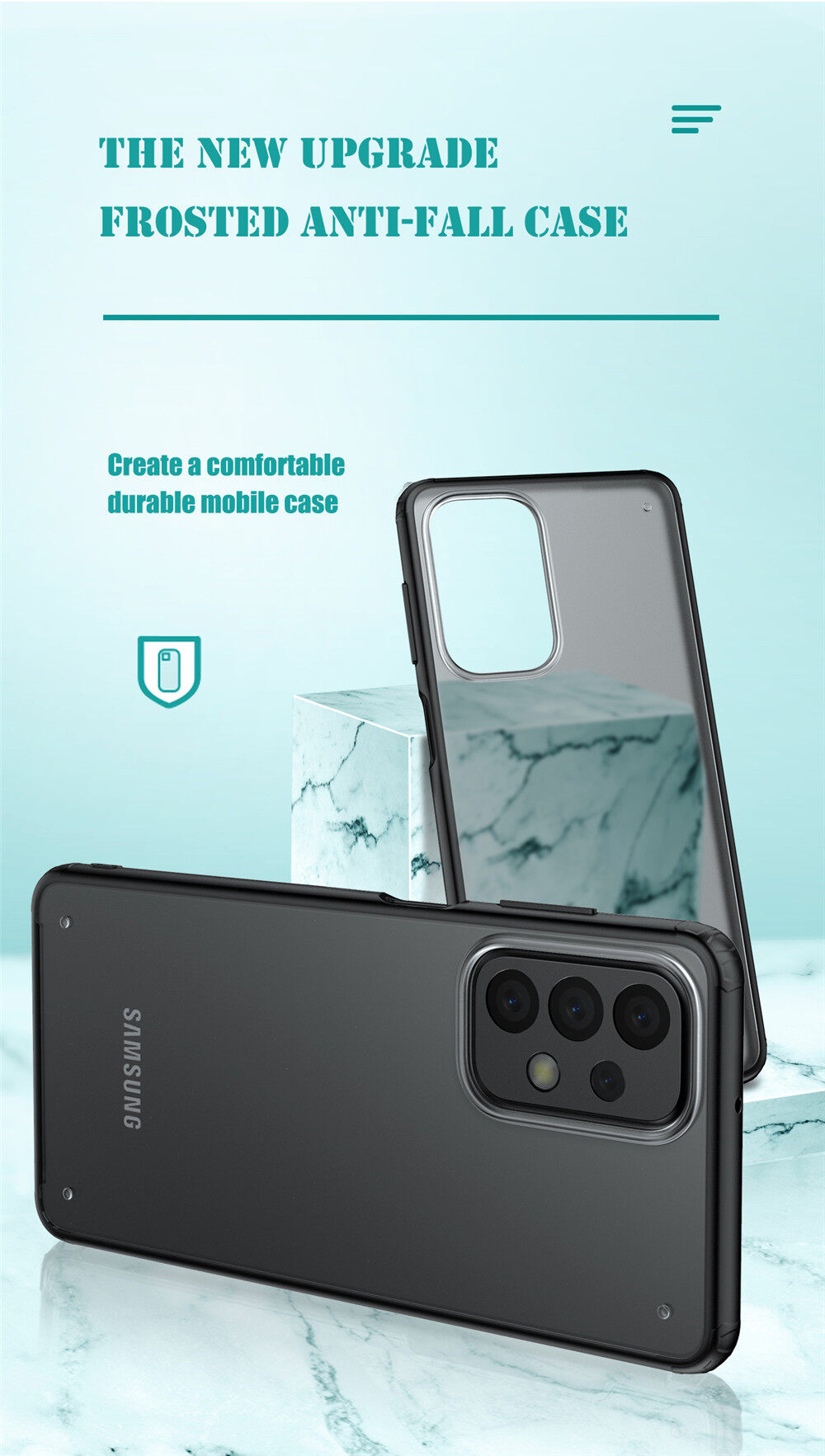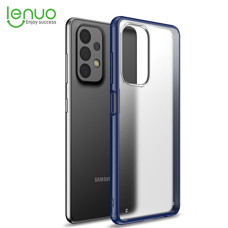 Lenuo for Samsung Galaxy A23 Case - 4-corner Shockproof Protection Flexible Silicon Bumper + PC Frosted Semi Transparent Back Cover