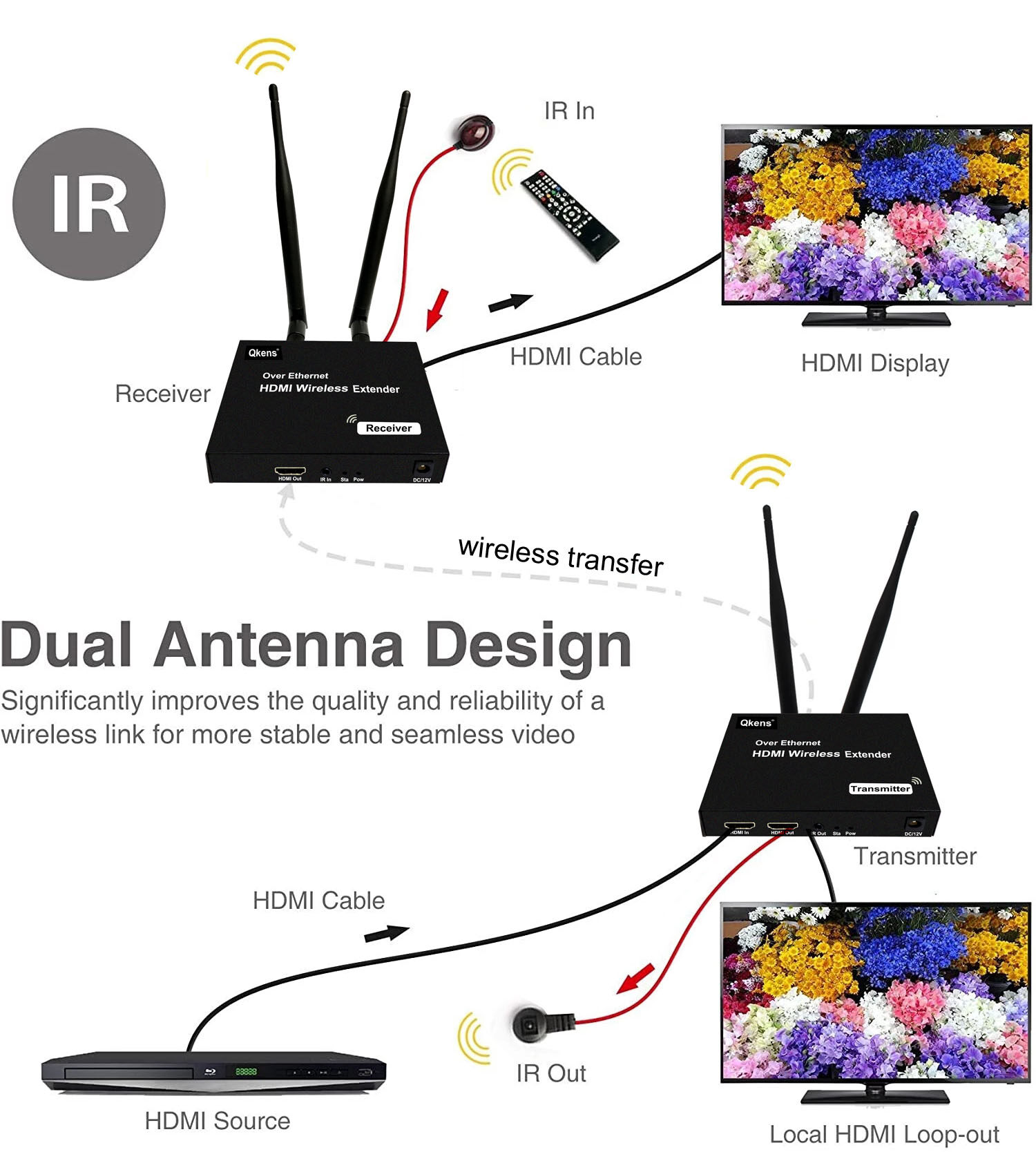 Wireless HDMI Extender 200M 2.4G/5G 1080P WiFi HDMI Transmitter Receiver kit TCP/IP extende support With Loop-out IR Remote