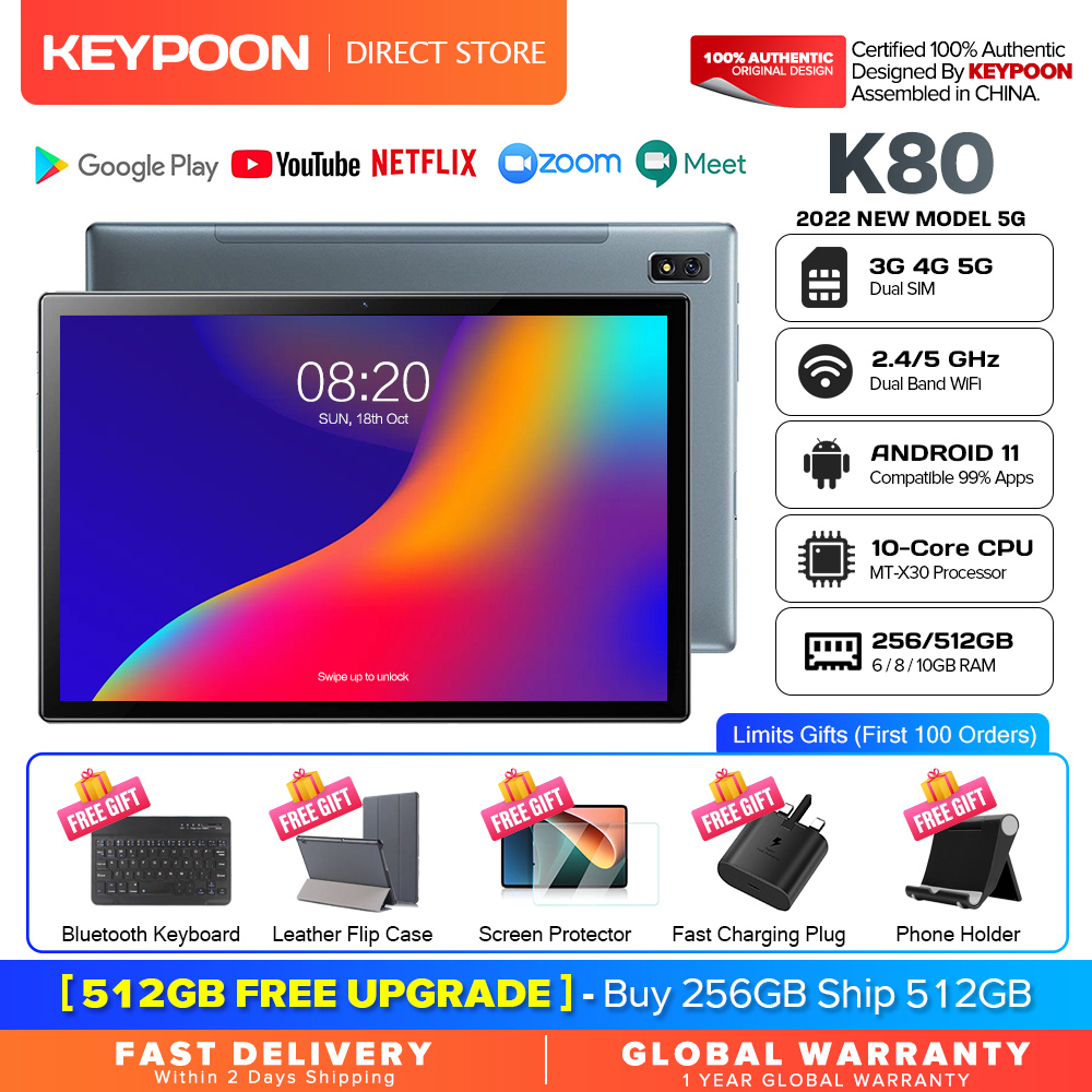 【2022 TOP7】 KEYPOON K80 Tablet PC 10.1 Inches 5G WiFi Android 11 Dual SIM 4G 8800mAh Gaming Online Classroom Meeting for Students 6GB 8GB 10GB RAM 128GB 256GB 512GB ROM