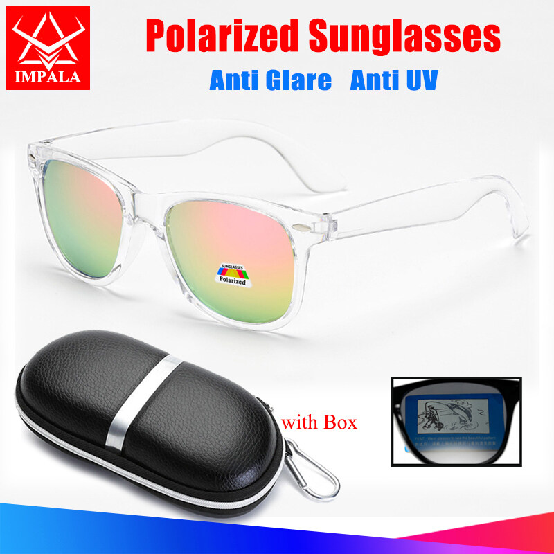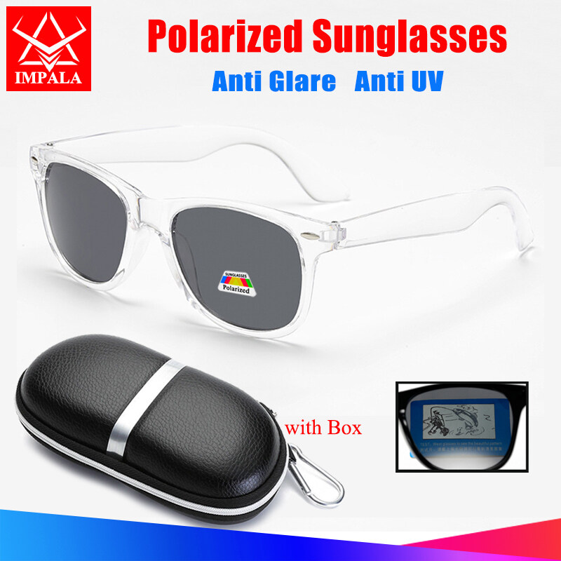 IMPALA PG2006L Fashion Polarized Sunglasses for Men and Women Classic Anti Glare Sun Glasses Driving Fishing UV Protective Black Shades Eyeglasses with Box