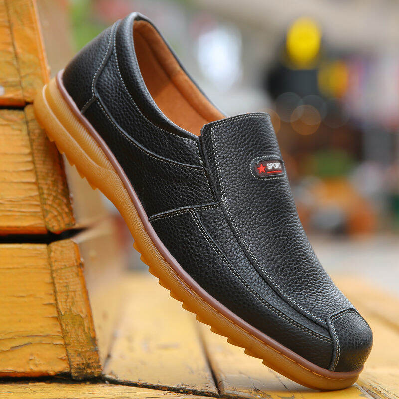 [Full-grain Leather] Casual Leather Shoes Men's Leather Tendon Bottom Handmade Stitching Leather Shoes Non-Slip Wear-Resistant Driving Shoes