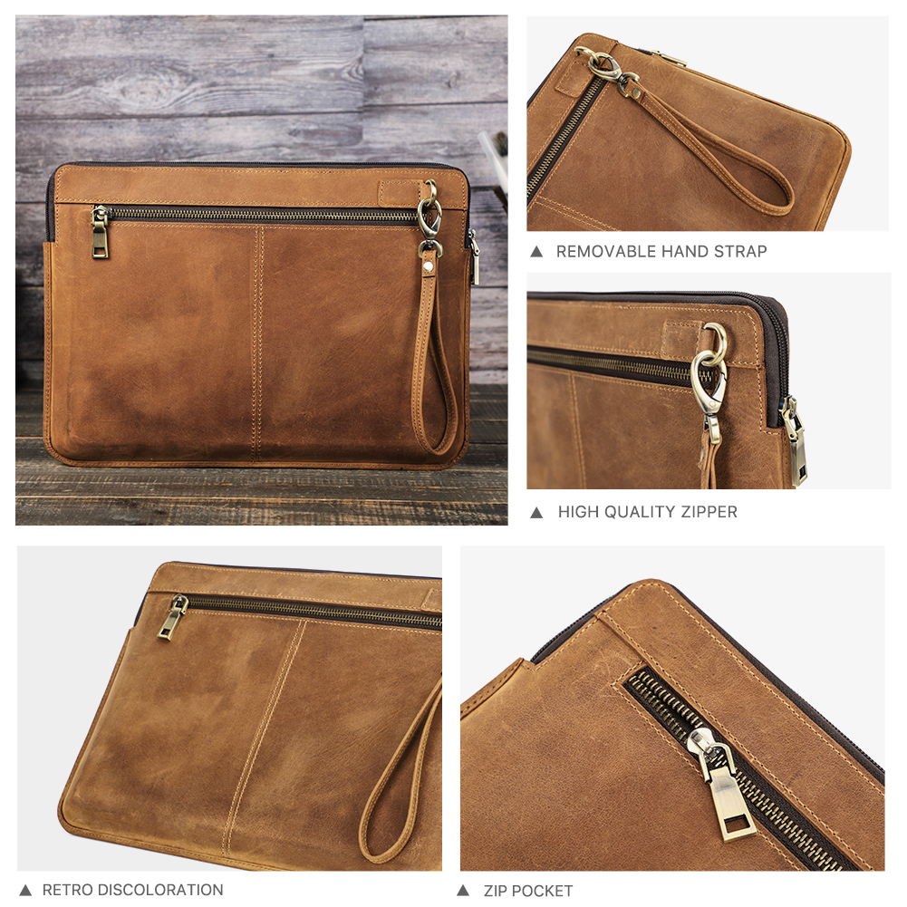 Genuine Leather Laptop Sleeve Case For Macbook Pro 14.2 Inch A2442 2021 Macbook 13-14 Inch Crazy Horse Cowhide Leather Case
