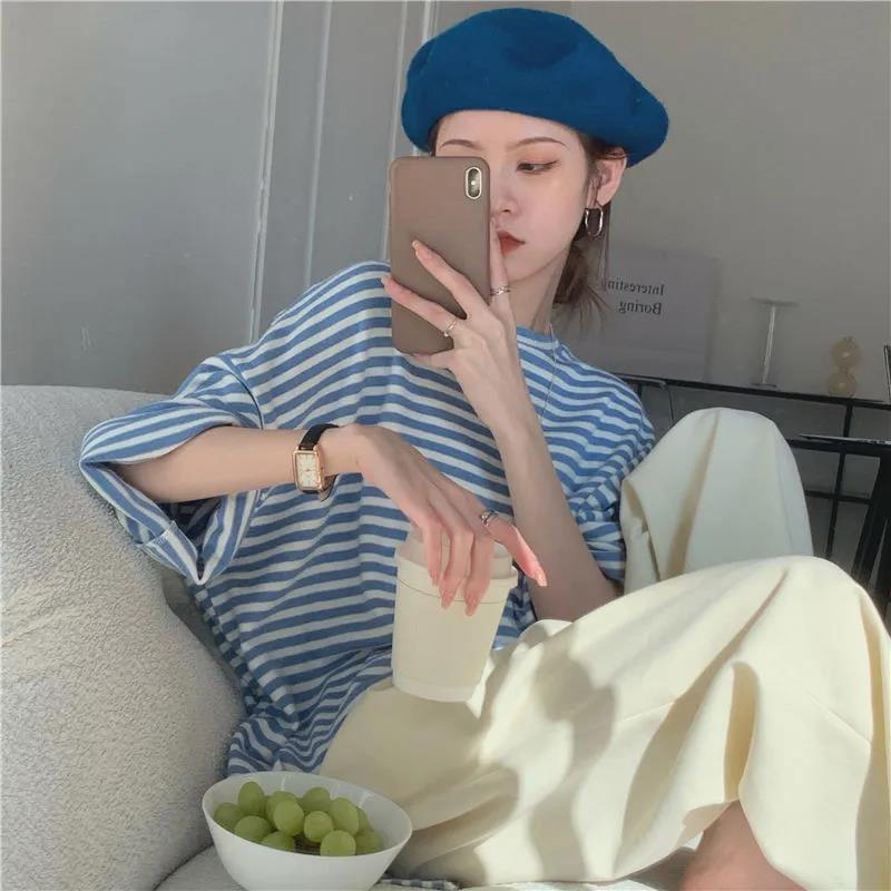 September Momo 2022 Summer New Short Sleeve High-Grade Slimming Hooded Dress Polo Collar Striped Dress for Women