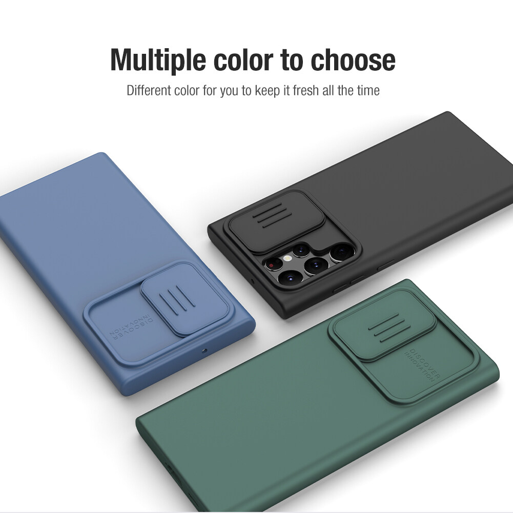Nillkin Liquid Silicone Case for Galaxy S22 Ultra CamShield Silky Silicone Series Friendly TPU Slide Cover Camera Protection Back Cover Casing
