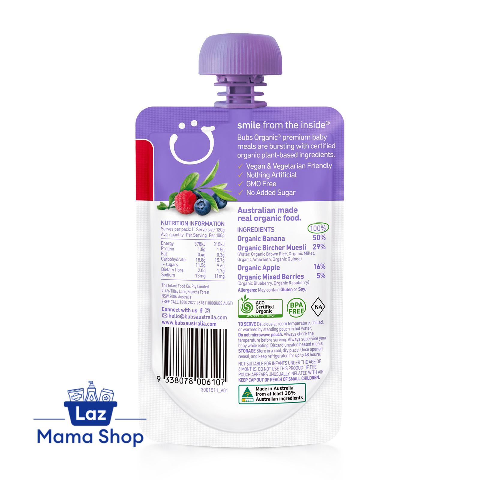 Bubs Organic Berry & Banana Bircher Muesli Pouch