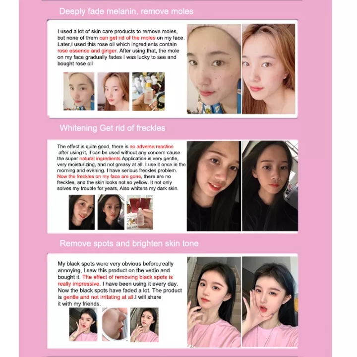 Rose pure facial essential oil freckles and black spots Whitening Removes mole Dark Spots Blemishes Whitening Moisturizer Vitamin E Serum 20ml