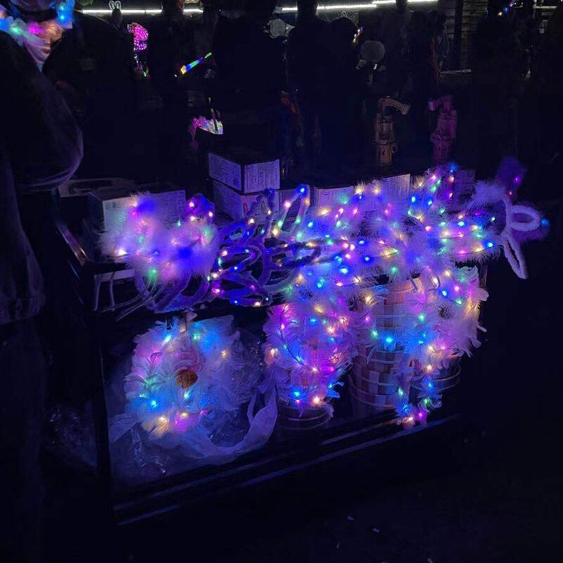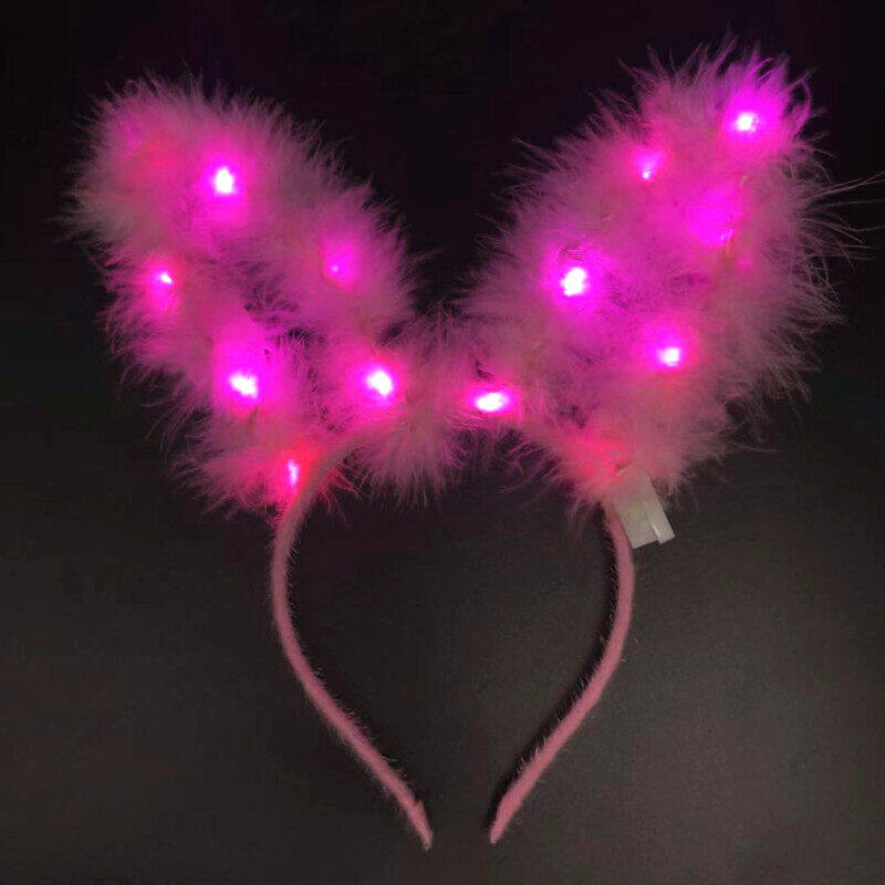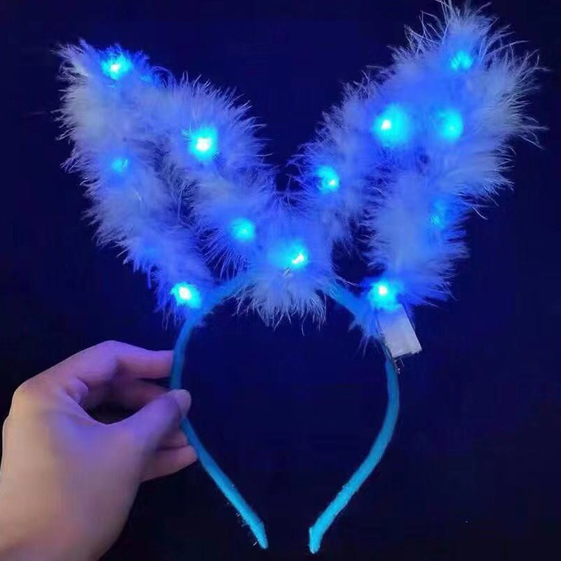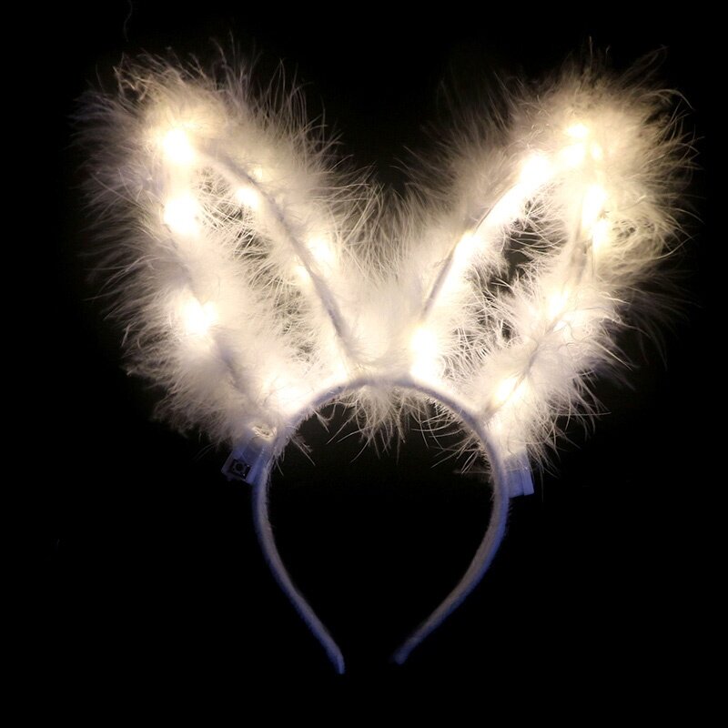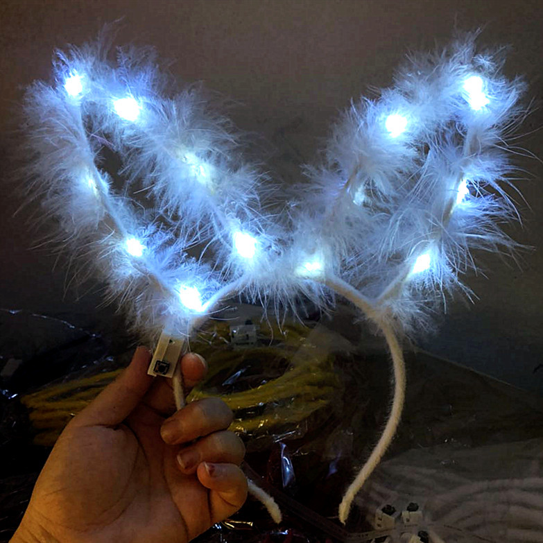 Fashion Plush Ears Led Girls Headband Feather Glowing Hairband Glowing Headwear Prop Supplies Holiday Party Gifts