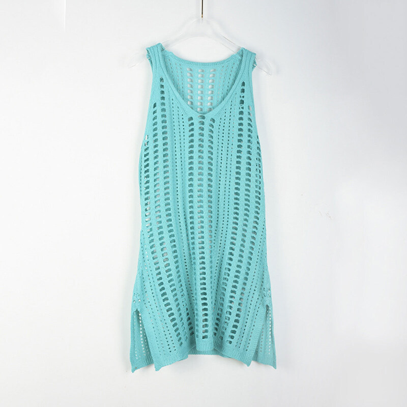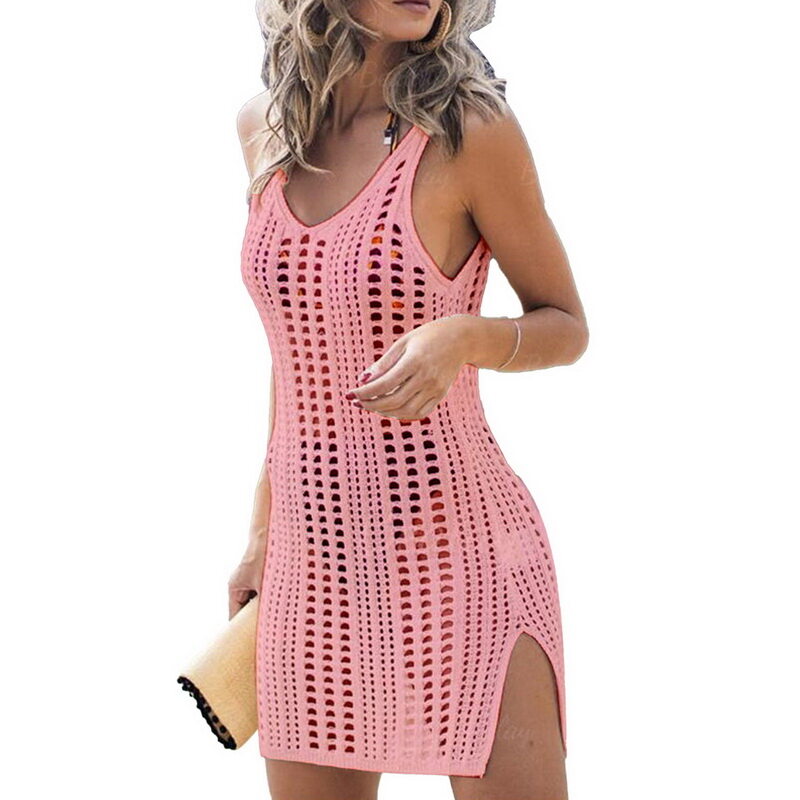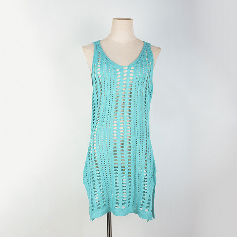 Eekisuf Sexy Hollow Out Beach Dress Women V Neck Sleeveless Crochet Swimsuit Cover Up Vestidos Female Bathing Suit