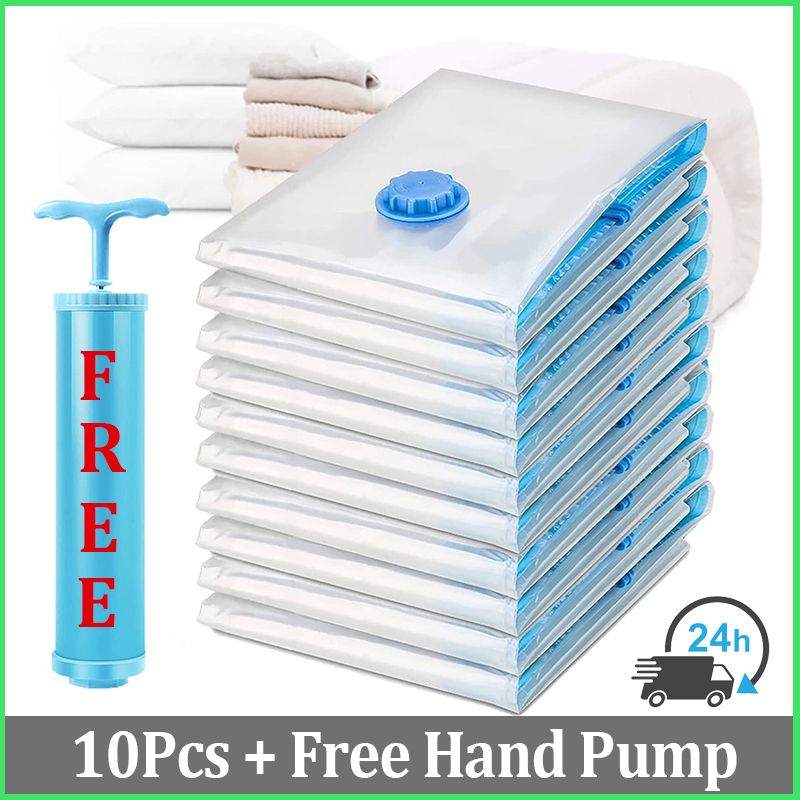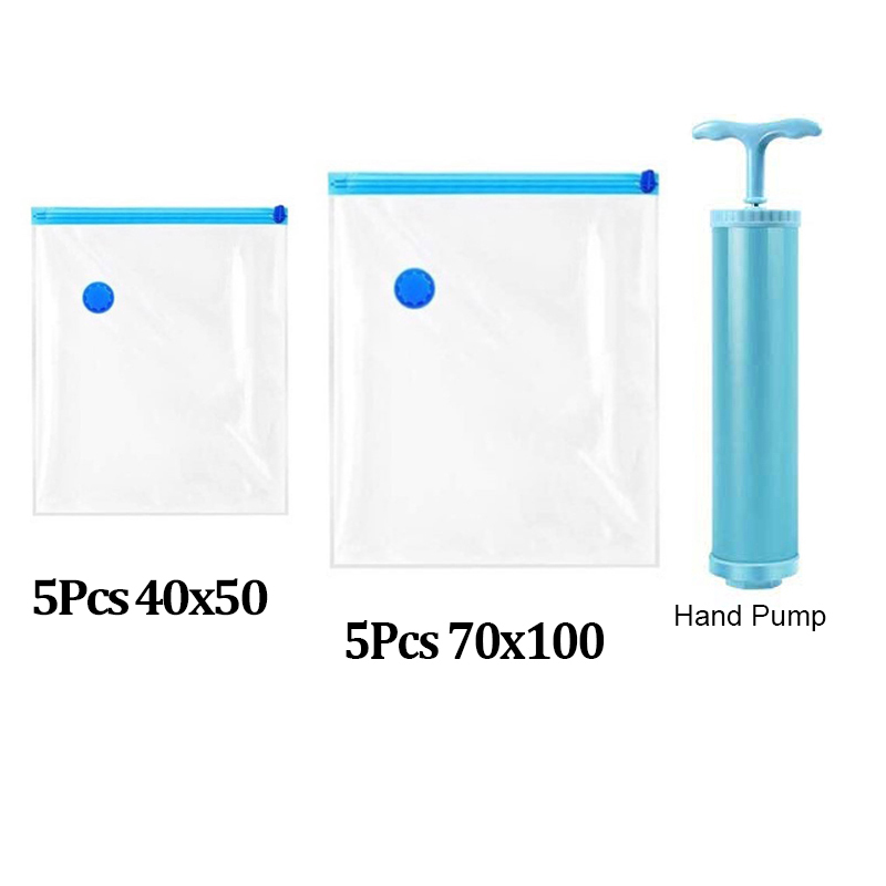 [FREE PUMP] 10Pcs Set Vacuum Storage Bag Travel Compression Bags 40X50/70X100 Large Sealer Packing Compression Bags/ Reusable Travel Vaccum Bag Compression Bag