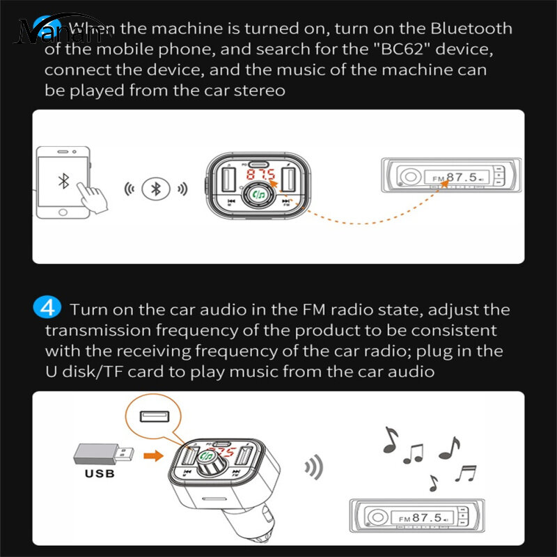 Bc62 Car Bluetooth-compatible Fm Transmitter Hands-free Calling Voice Assistant Atmosphere Light Voltage Detection Pd Fast Charger