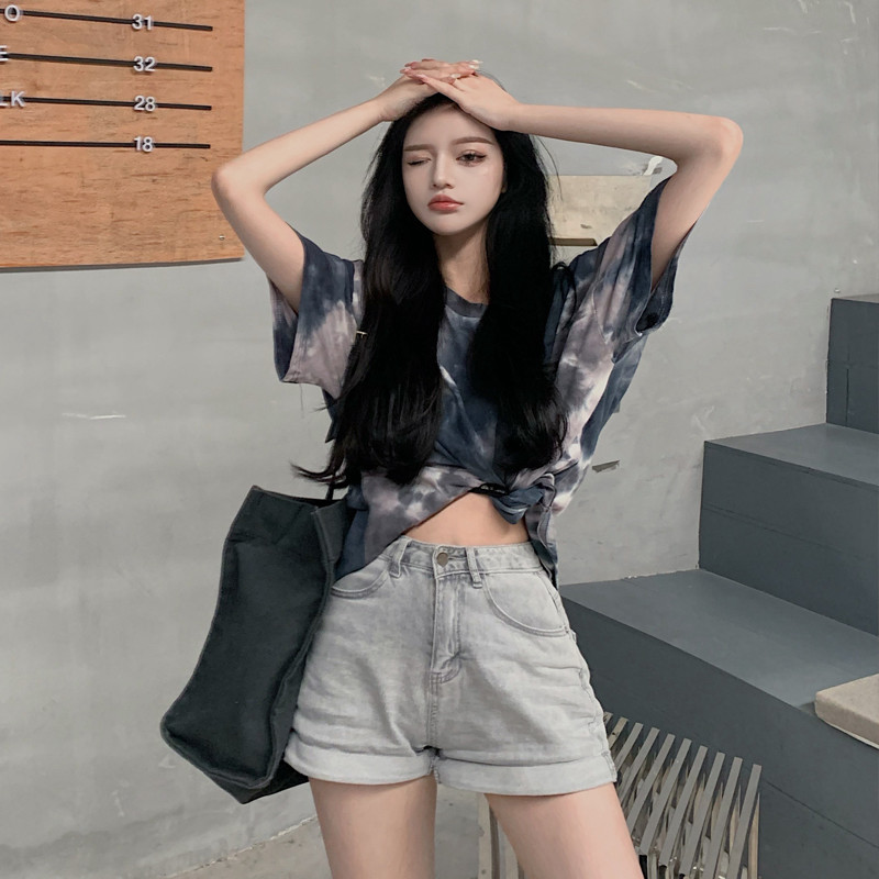 INWPLLR Backless Tie-dye Tshirts Women Ins Loose Short Sleeve T-shirt Summer New Style Mid-length Tops 4XL
