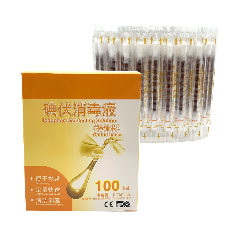 ?. Gently fold the cotton swab, and it will change to iodophor in seconds: one side of the colored ring is facing up, break it gently, and soak the other end carefully