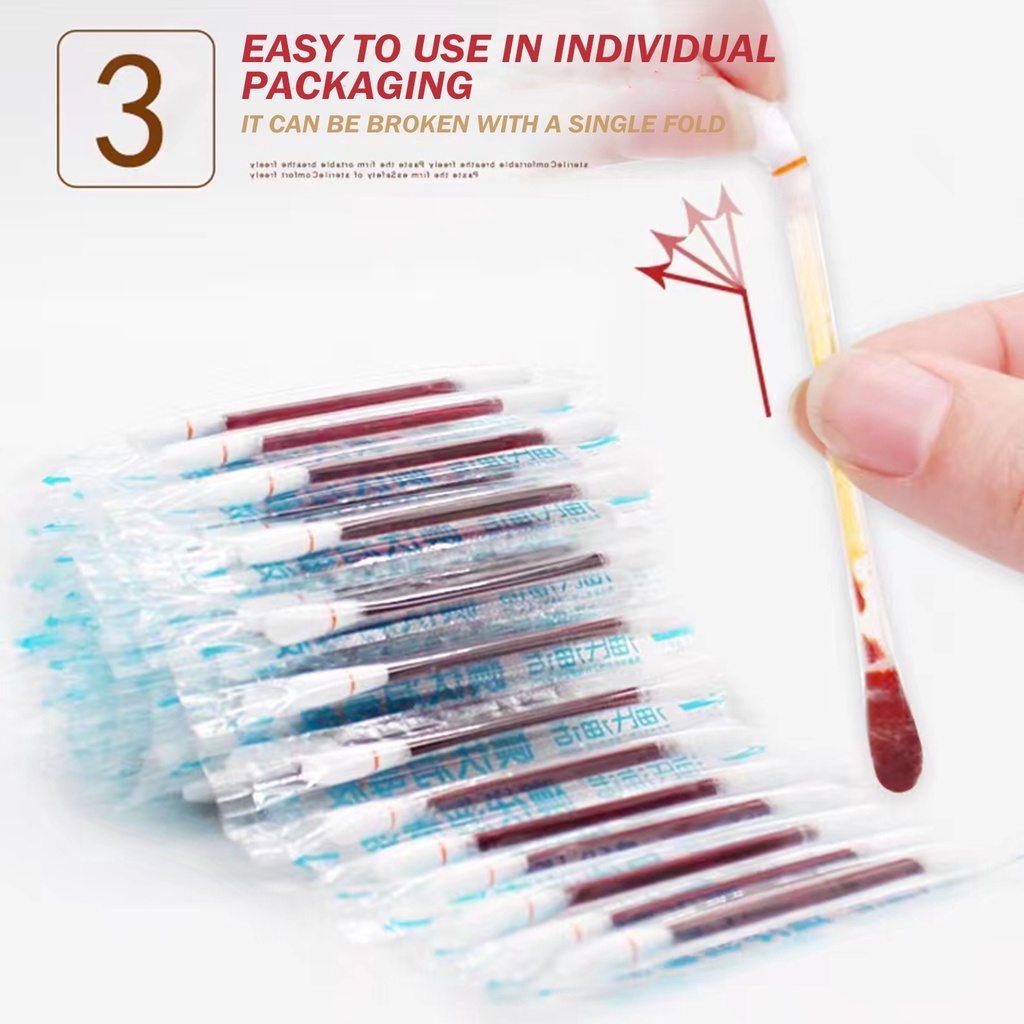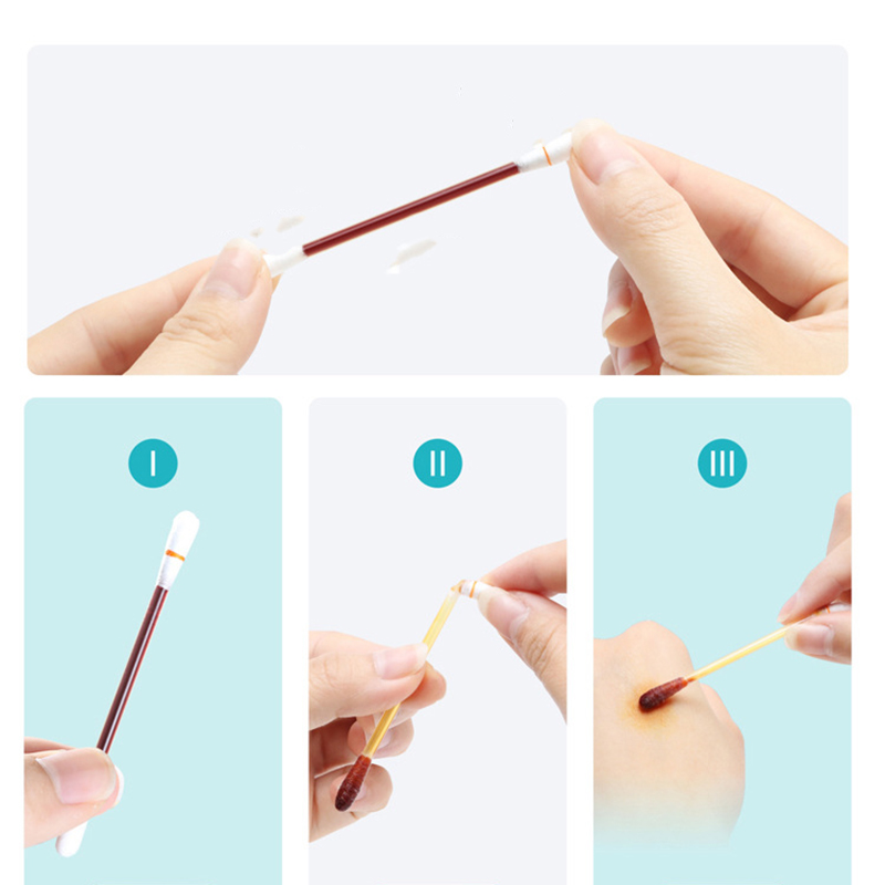 Turn one end of the color ring of the cotton swab upwards, break it, and the liquid inside flows to the cotton tip at the other end, just wipe it directly, and discard it after use