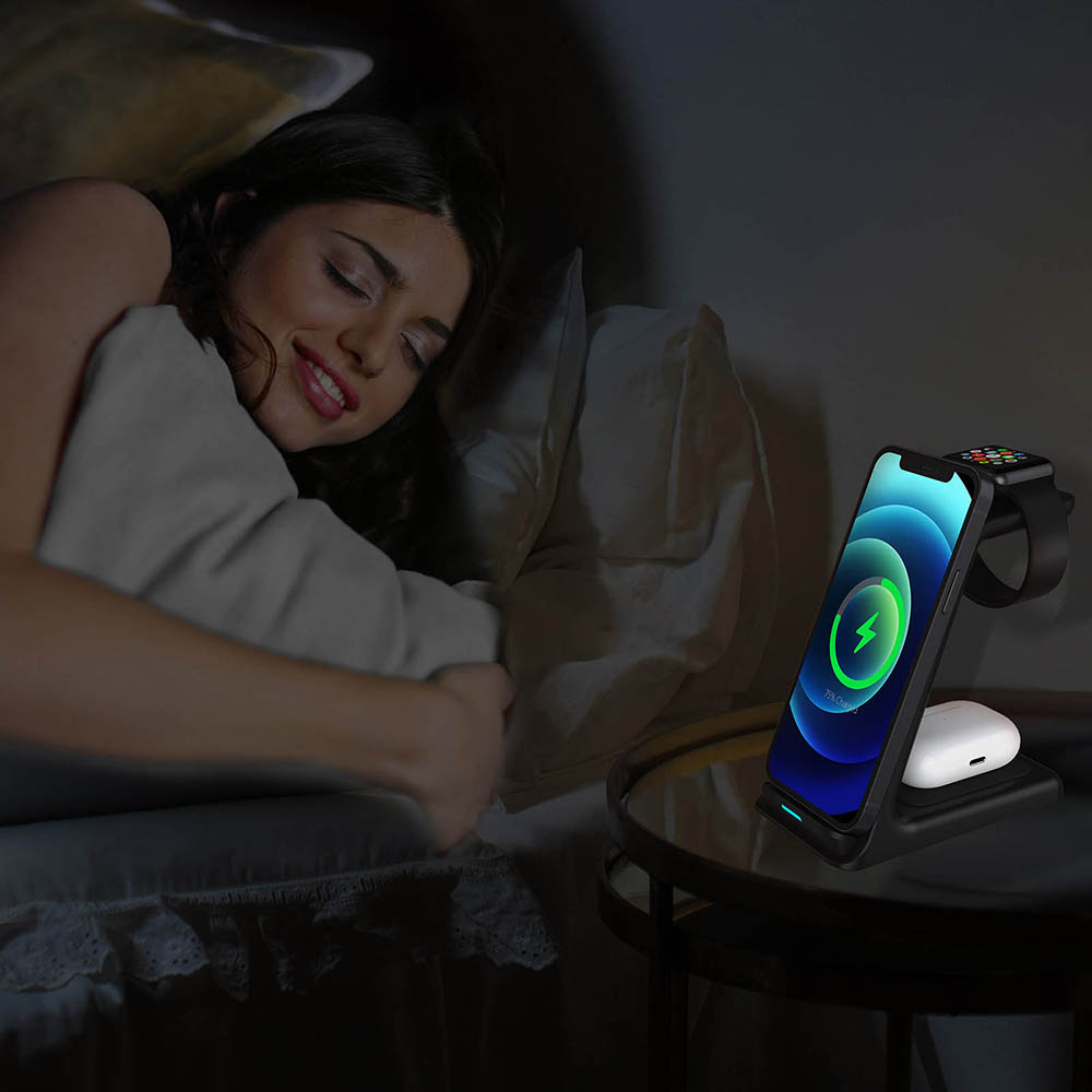 WITH DUAL CHARGING COIL DESIGN:The 2021 new 3 in 1 wireless charging station can provide a more stable charging experience without the intermittent charging or overheating caused by mismatch. Improved the charging speed, eliminate the hassle of finding the "Best Location".