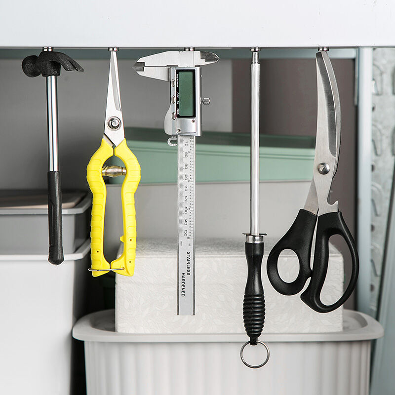 Dulcii 1PCS No Drilling Space Aluminium Kitchen Hooks Rack Multifunction Wall Mount Kitchen Shelf Utensil Holder With Hooks Mug Storage Kitchen Tools Holder Wall Mounted Kitchen Organizer