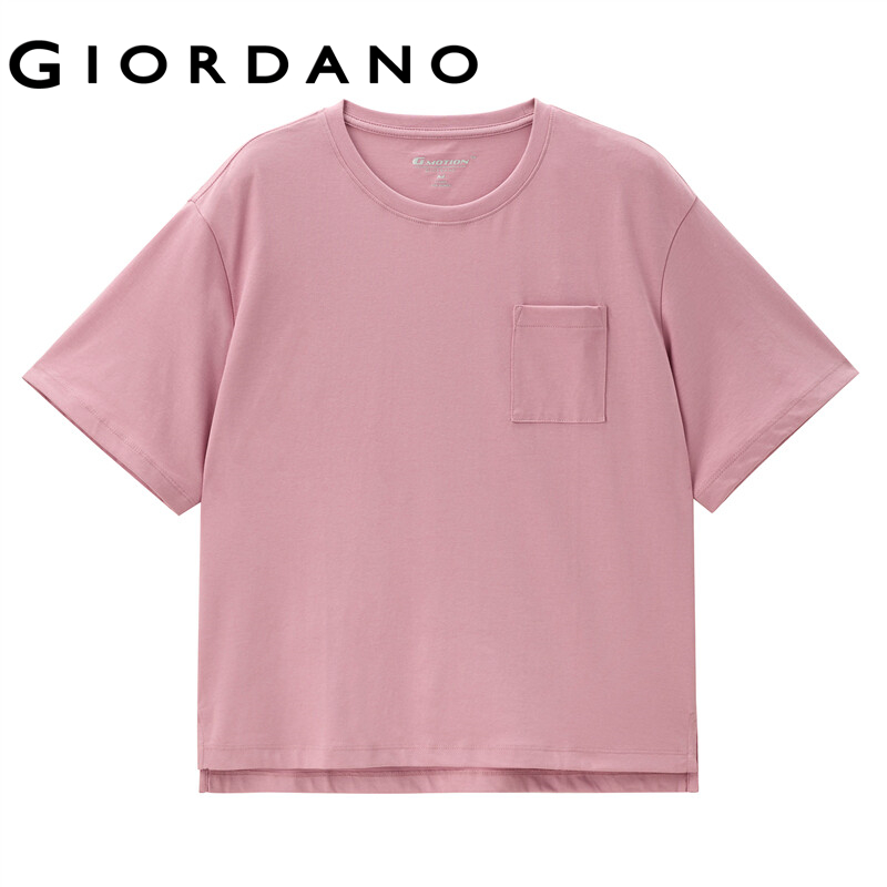 GIORDANO Women T-Shirts G-MOTION High-Tech Quick Dry Sorona T-Shirts Antibacterial Patch Pocket Simple Casual Sport Tee 05322222