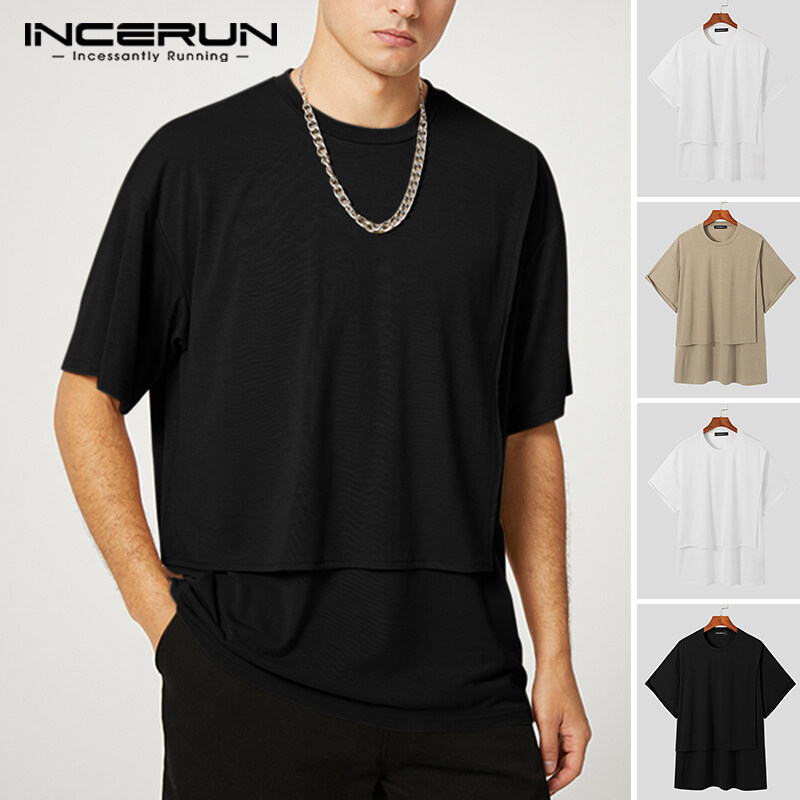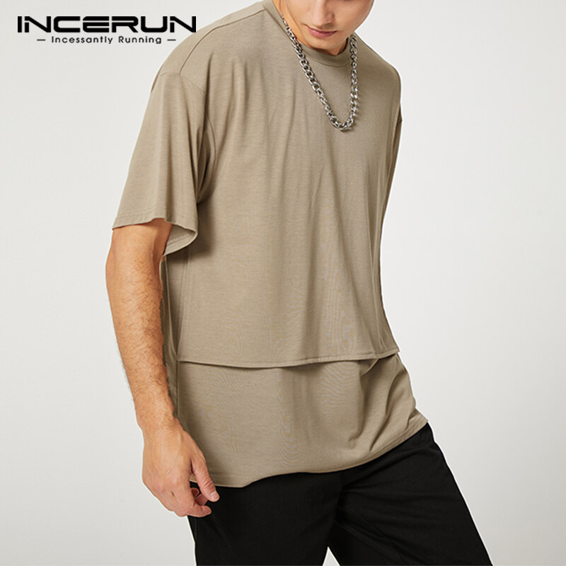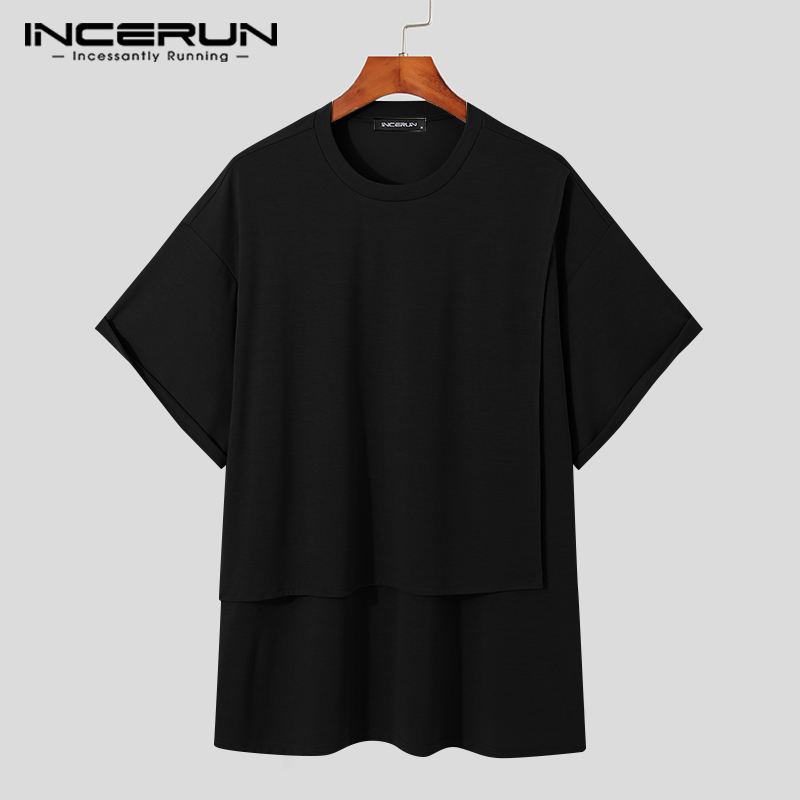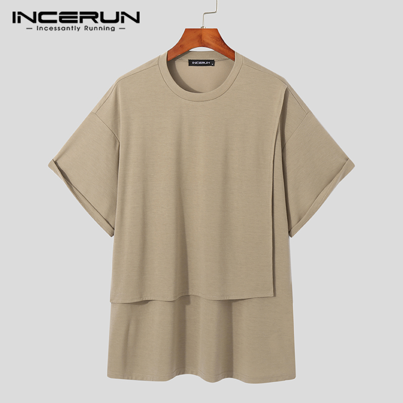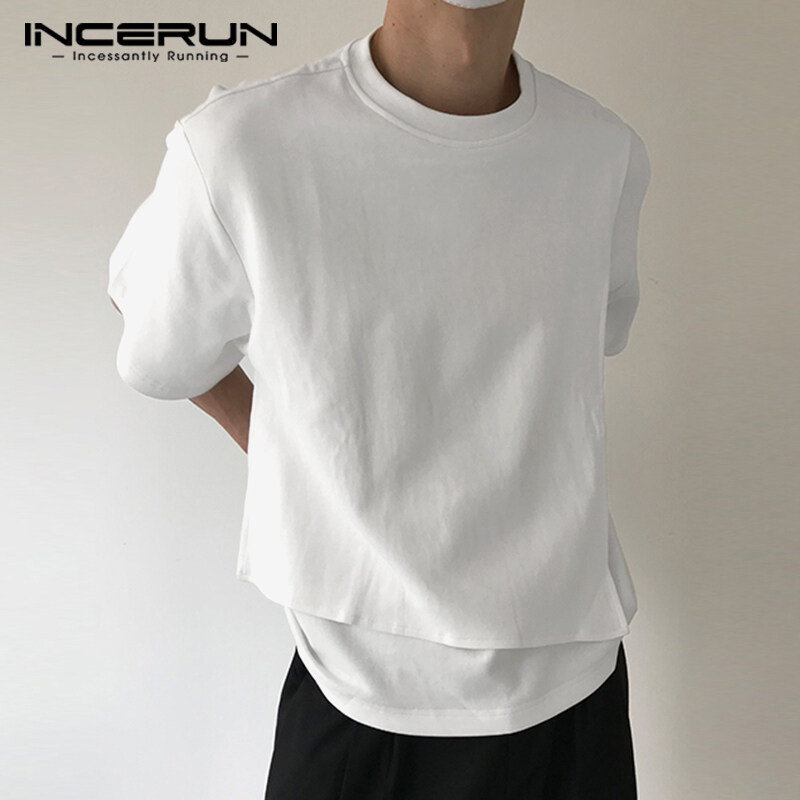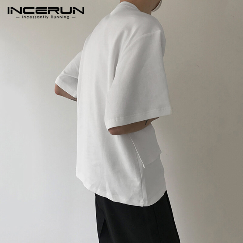 INCERUN Mens Short Sleeve Japanese Crew Neck T Shirts Casual Loose Solid Blouse Tee Tops (Korean Style)