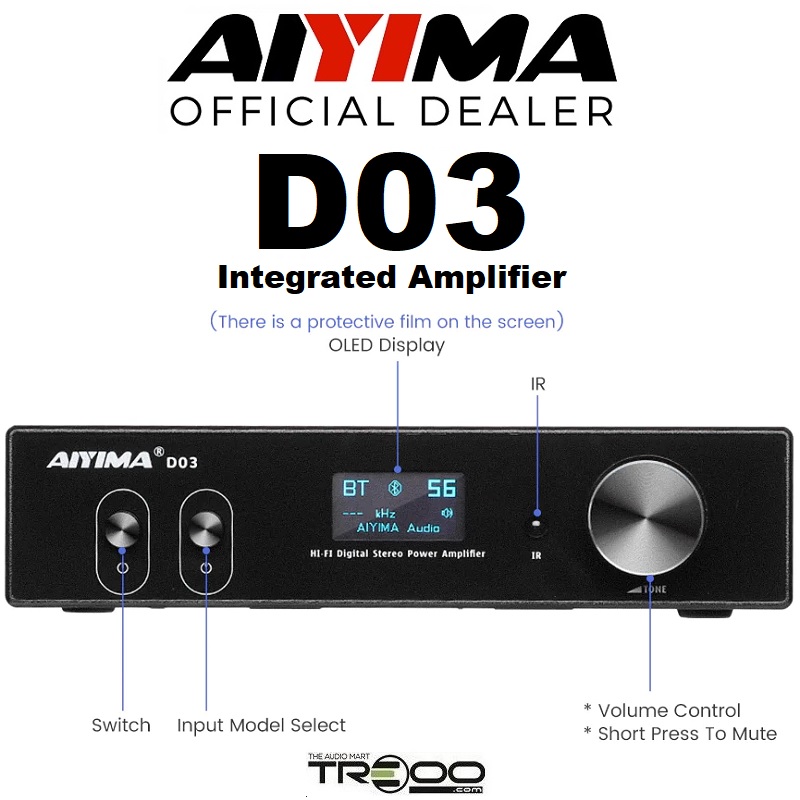 AIYIMA D03 Wireless Bluetooth Receiver/Streamer & Hi-Fi Integrated Amplifier (Official local stock - SG/UK plug)