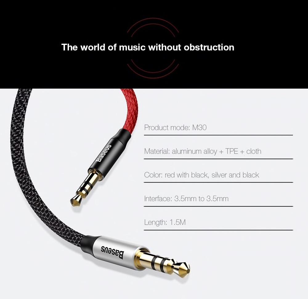 Baseus Yiven M30 Aux Cable 3.5mm Male to Male Audio Cable Car Headphone Extension Audio Cable 1.5m