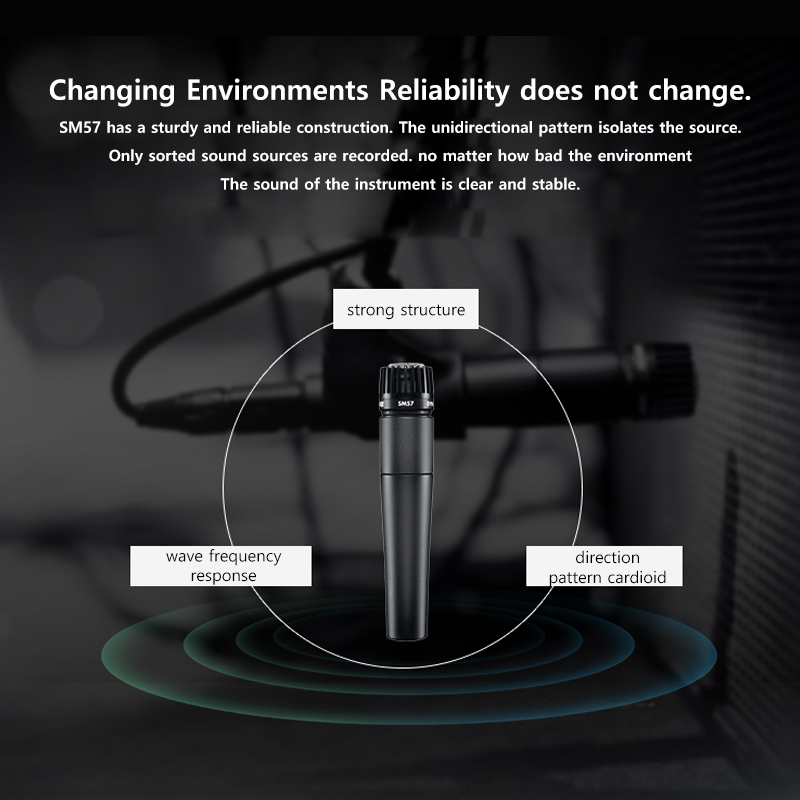 Professional quality mic ideal for lead and backup vocal performance Pro-quality versatile microphone SM57 Microphone 15 ft. (4.57m) XLR-XLR Cable Zipper pouch