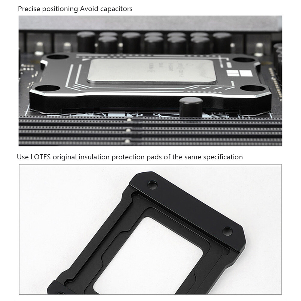 This LGA 1700 Anti-Bend Buckle adopts an all-aluminum CNC gold anodized sandblasting process, with an overall size of 70 x 54 x 6 mm and an overall weight of 55g. Its precise positioning can avoid the capacitors on the motherboard, and uses the original LOTES insulation protection pads, and also provides different color schemes