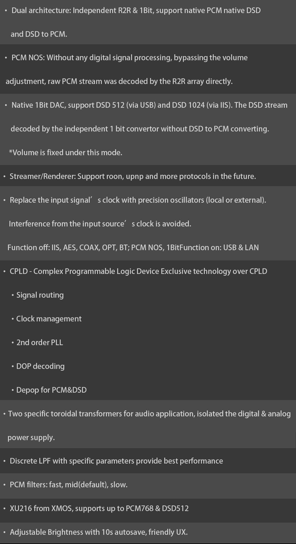 IIS: PCM 16-32bit/44.1-768kHz; DSD DOP64-DOP256