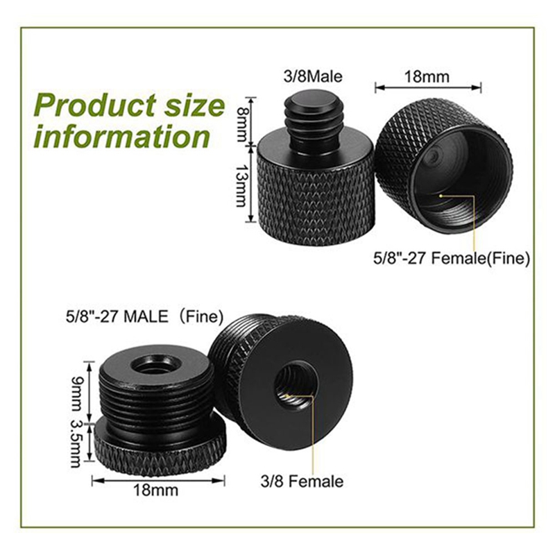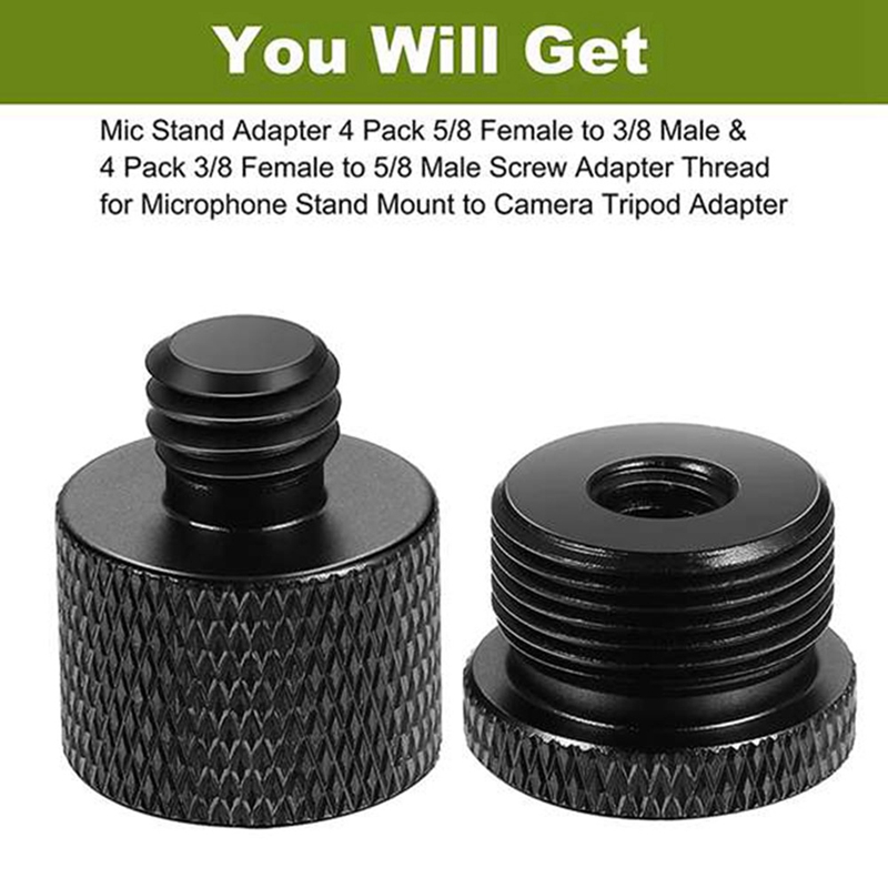4 Pcs Mic Thread Adapter 5/8 Female to 3/8 Male and 3/8 Female to 5/8 Male Screw Adapter Thread for Mic Stand Mount