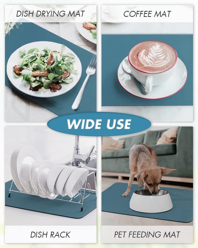 Quick Drying Mat Rectangle Placemat Diatomite Placemat Dish Mat Kitchen Draining Sink Anti-Slip Pad Durable Cup Coaster Tableware dish drying mat Kitchen accessories Coffee Pad Rubber Backed Absorbent