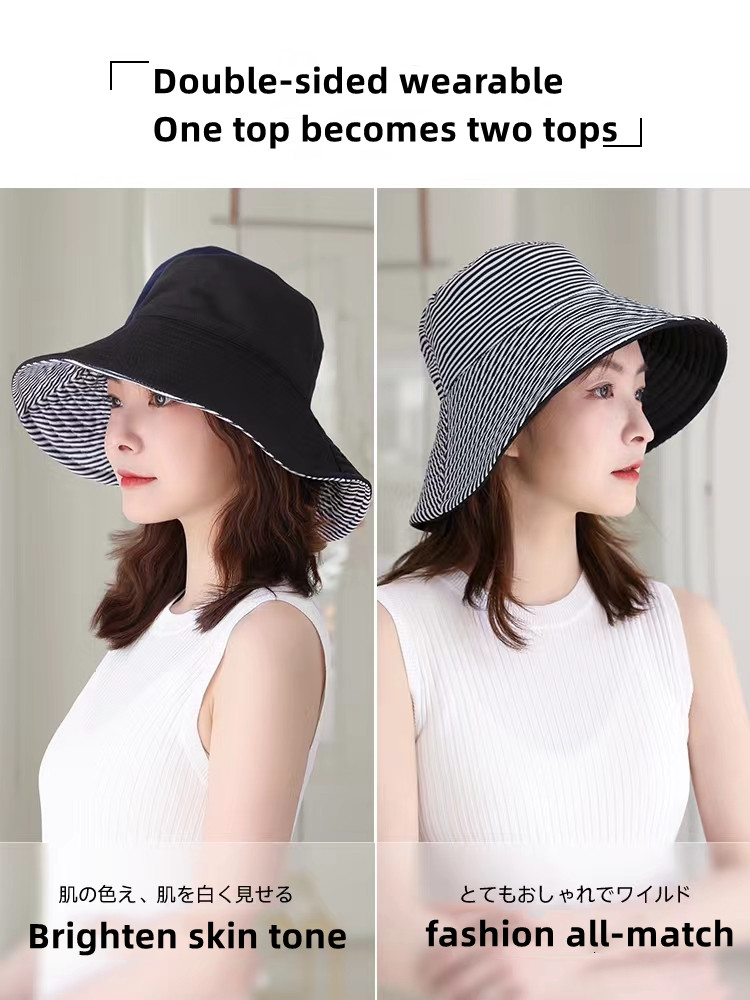 Women Double-sided Fisherman Hat / Outside Travel Beach Fisherman Visors Hat / Fashion Casual Wide Brim Hat/ Foldable Anti-ultraviolet Sun Cap