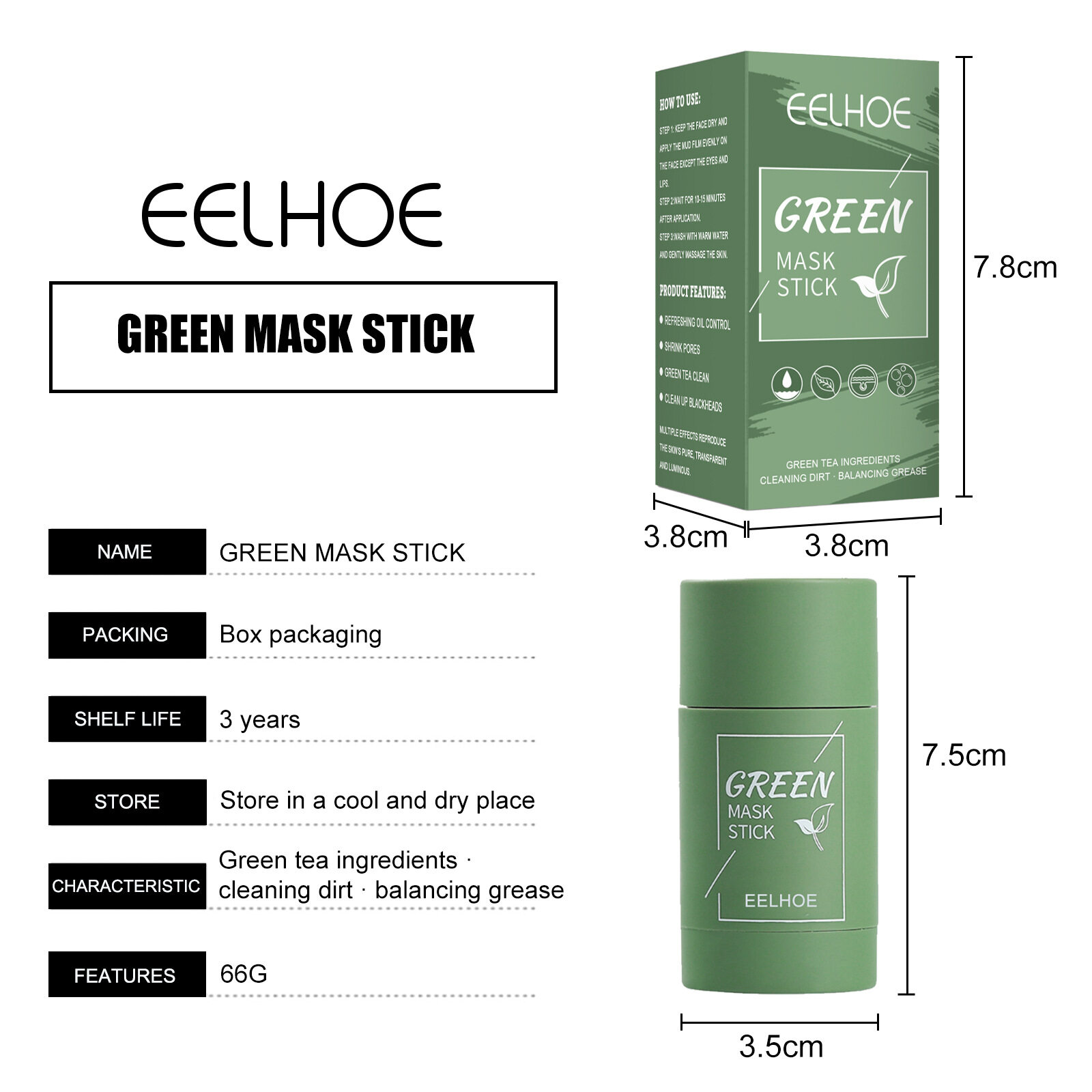 Eelhoe Green Tea Solid Mask Stick Oil Control Deep Cleansing Peeling Mask Clean Up Reduce Blackheads Whitening Smoothing Anti Acne Treatment Reduce Shrink Pores Face Mask Beauty Face Care Mask Green M
