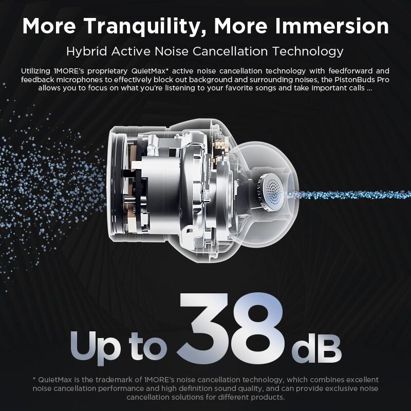 World Premiere 1MORE PistonBuds Pro Triple ANC Bluetooth 5.2 Wireless Earbuds 4 Microphone DNN Metal Diaphragm 30 Hour Battery