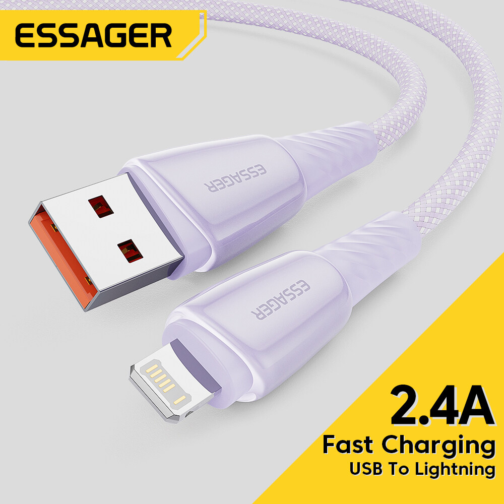 ESSAGER PD USB A To Lightning Cable For iPhone 11 12 13 Pro Max 2.4A Fast Charging Charger Cable For iPhone 6 7 8Plus iPad Data Cord Wire