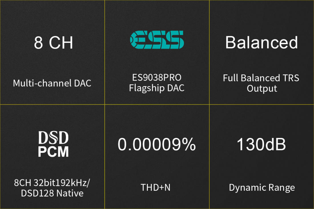 > Decoding Specs: 32-Bit/192kHz PCM, DSD128 natively, DSD64(DoP).