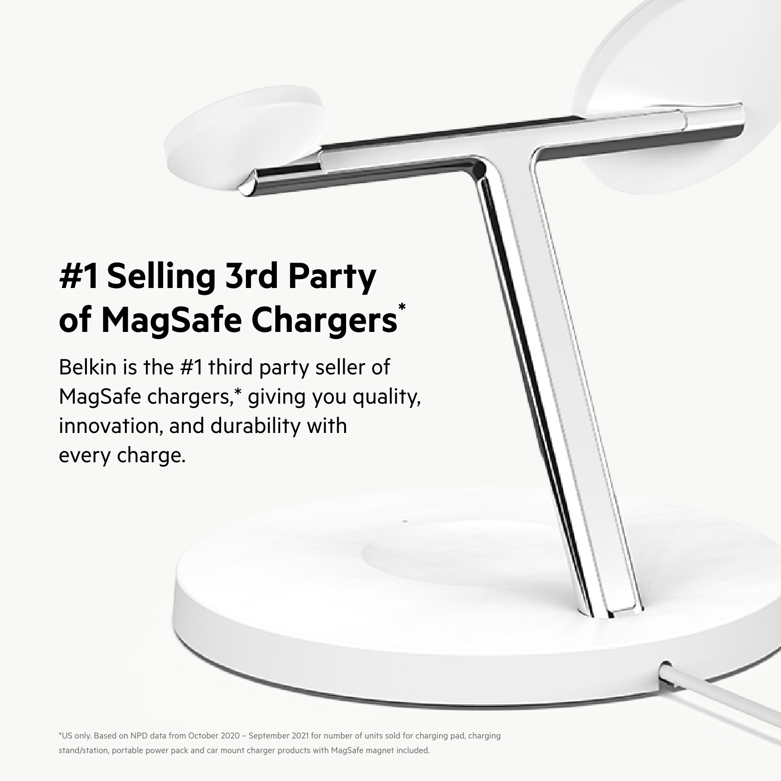 Belkin WIZ017my BoostCharge PRO 3-in-1 Wireless Charger with MagSafe 15W and Power Adapter (iPhone 14/13/12)