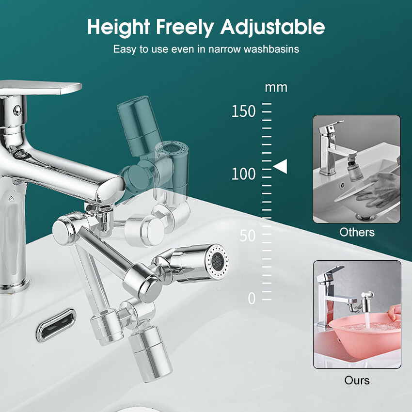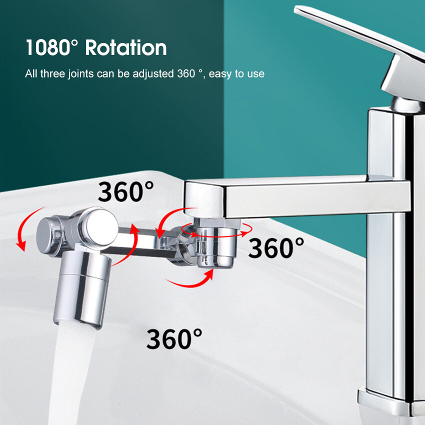 JvGood Faucet Tap Kitchen 1080° Rotatable Water Tap Extension Splash-proof Faucet Mechanical Arm Faucet Water Nozzle Faucet Adaptor Kitchen Tap with 2 Water Outlet Modes