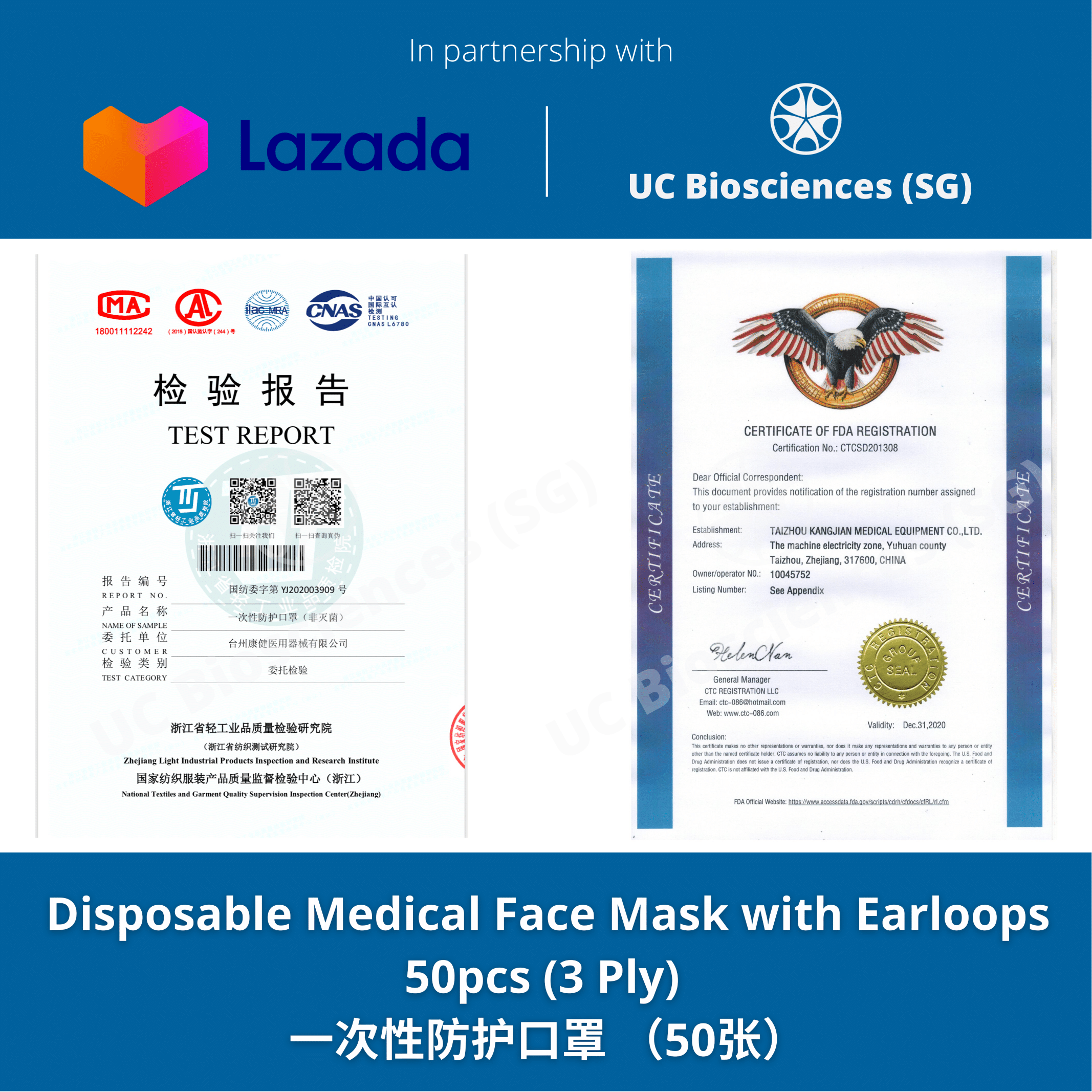 HePing Disposable Medical Face Mask with Earloops 50pcs (3 Ply)