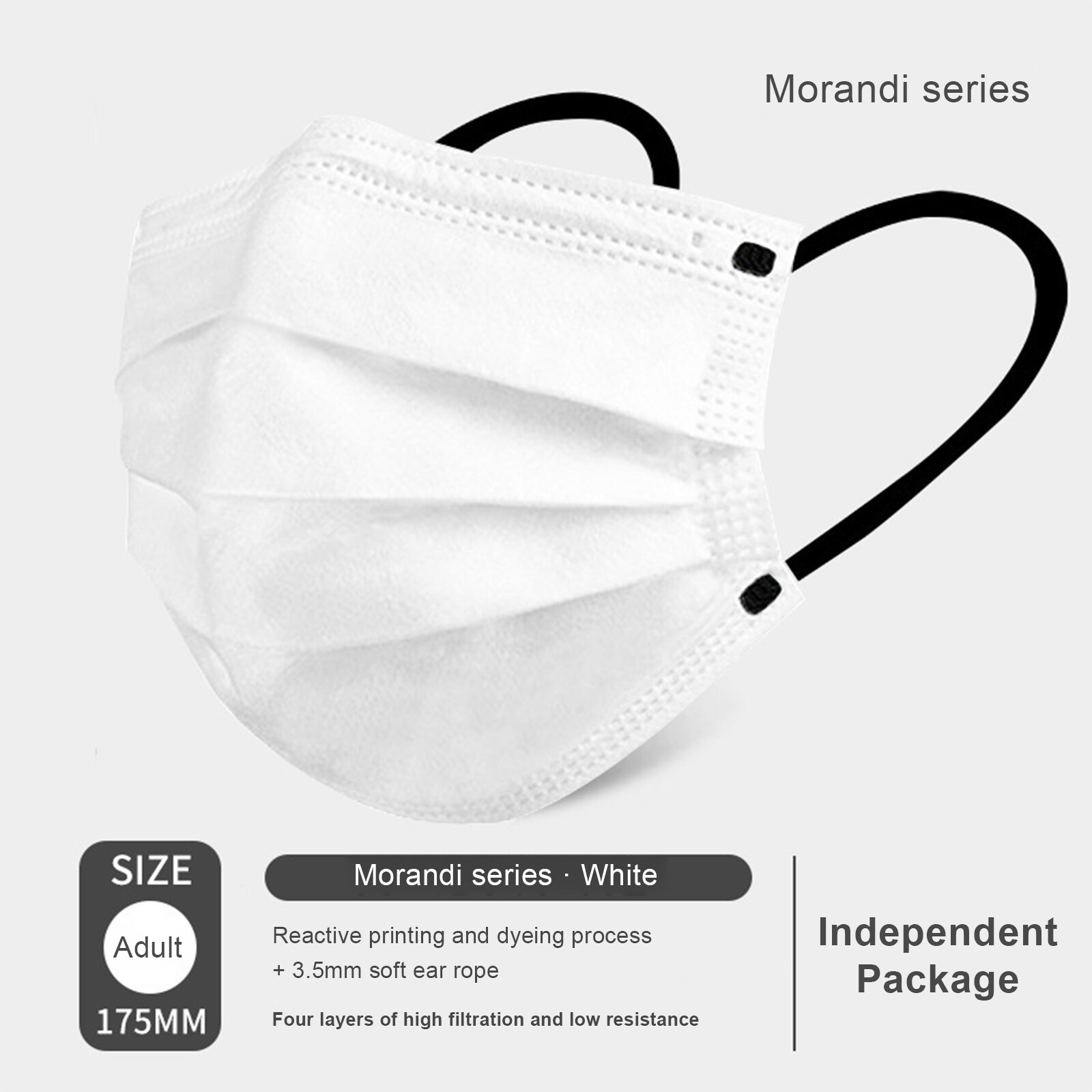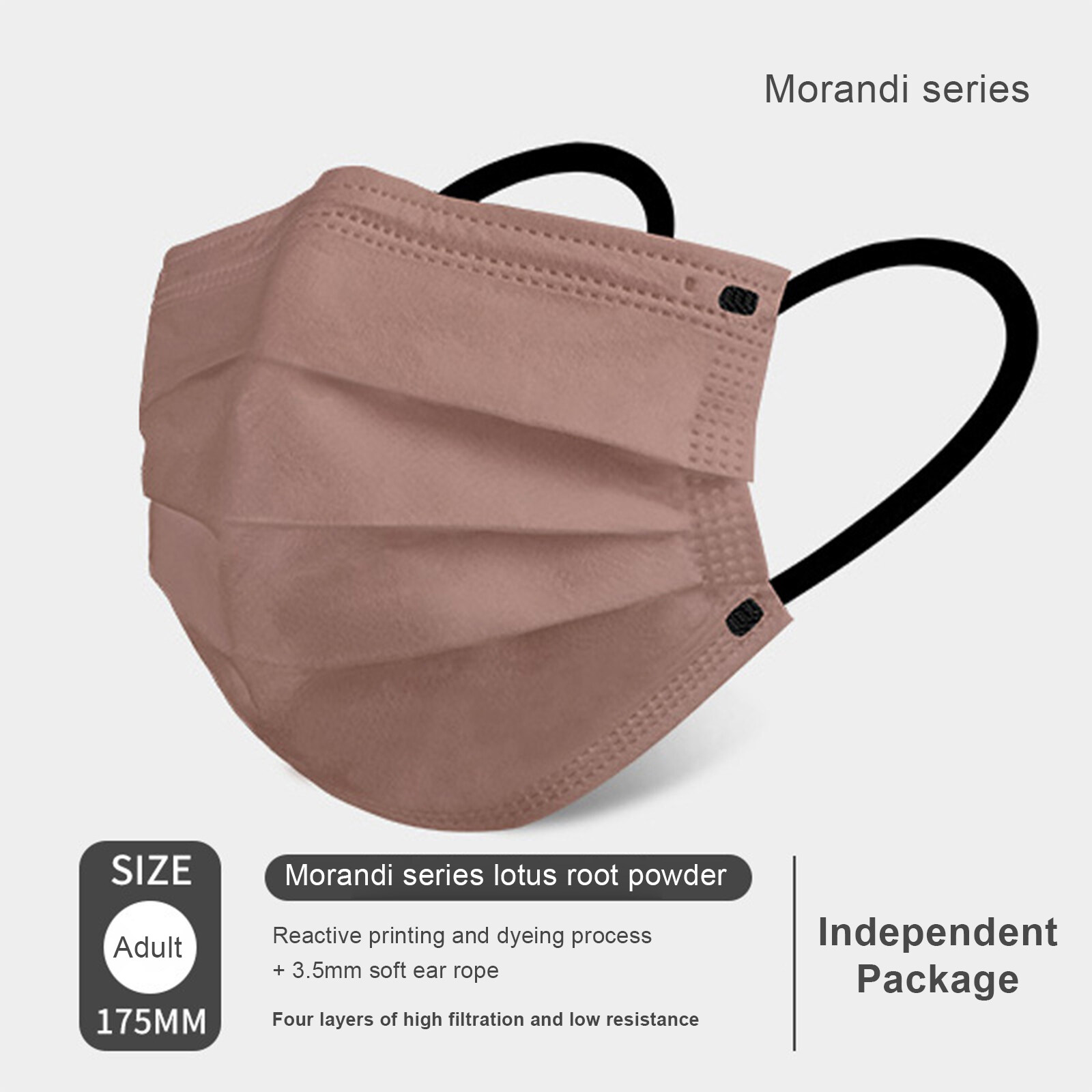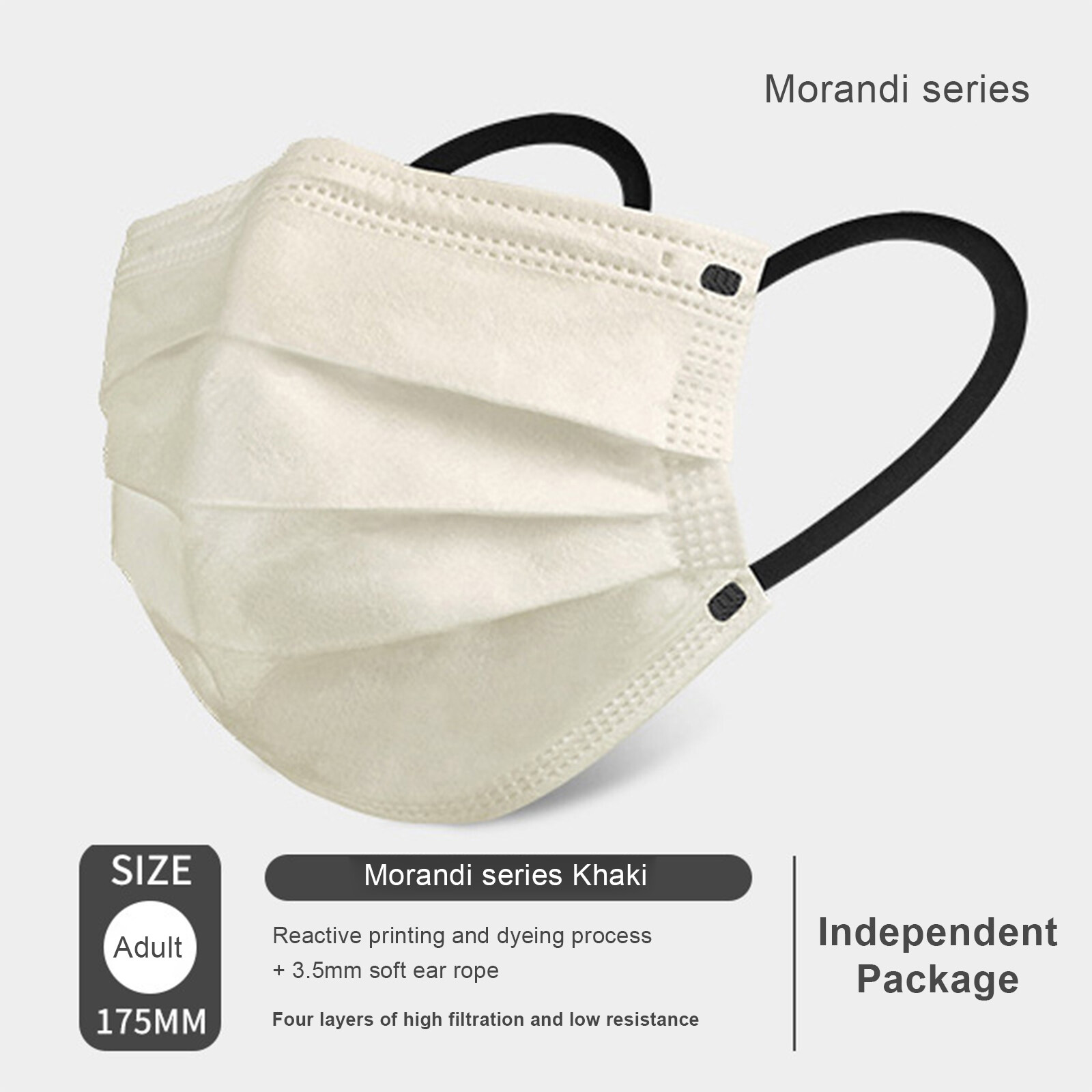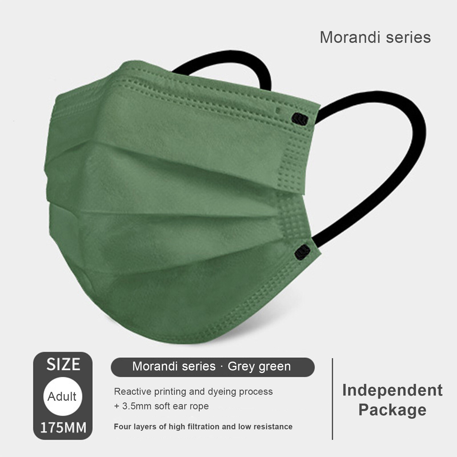 [EnidJuli] 10PCS Adult Mask 4Ply Morandi Disposable Face Mask Individually Packed Face Mask 3.5mm Anti-Strain Ear Straps Breathable Face Mask