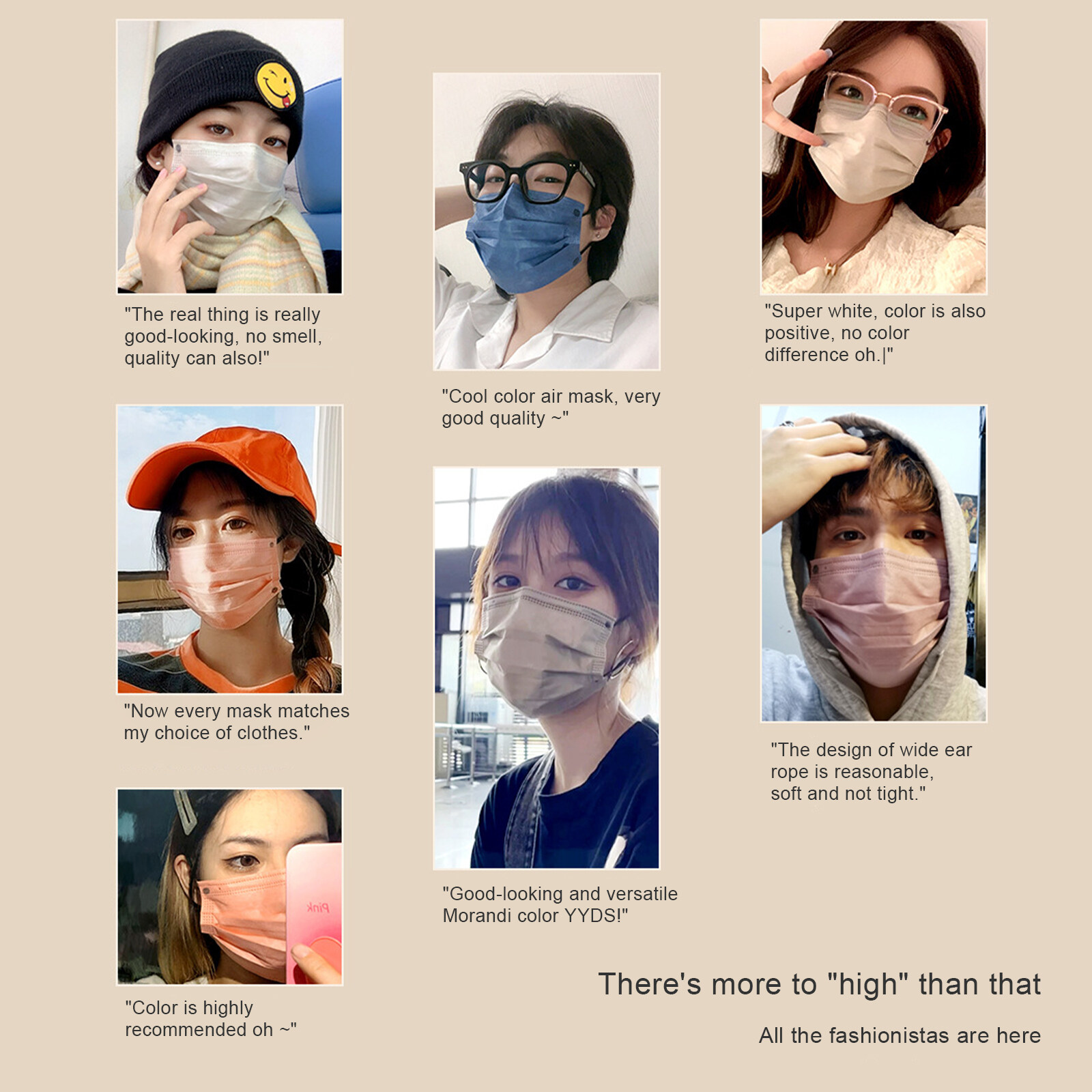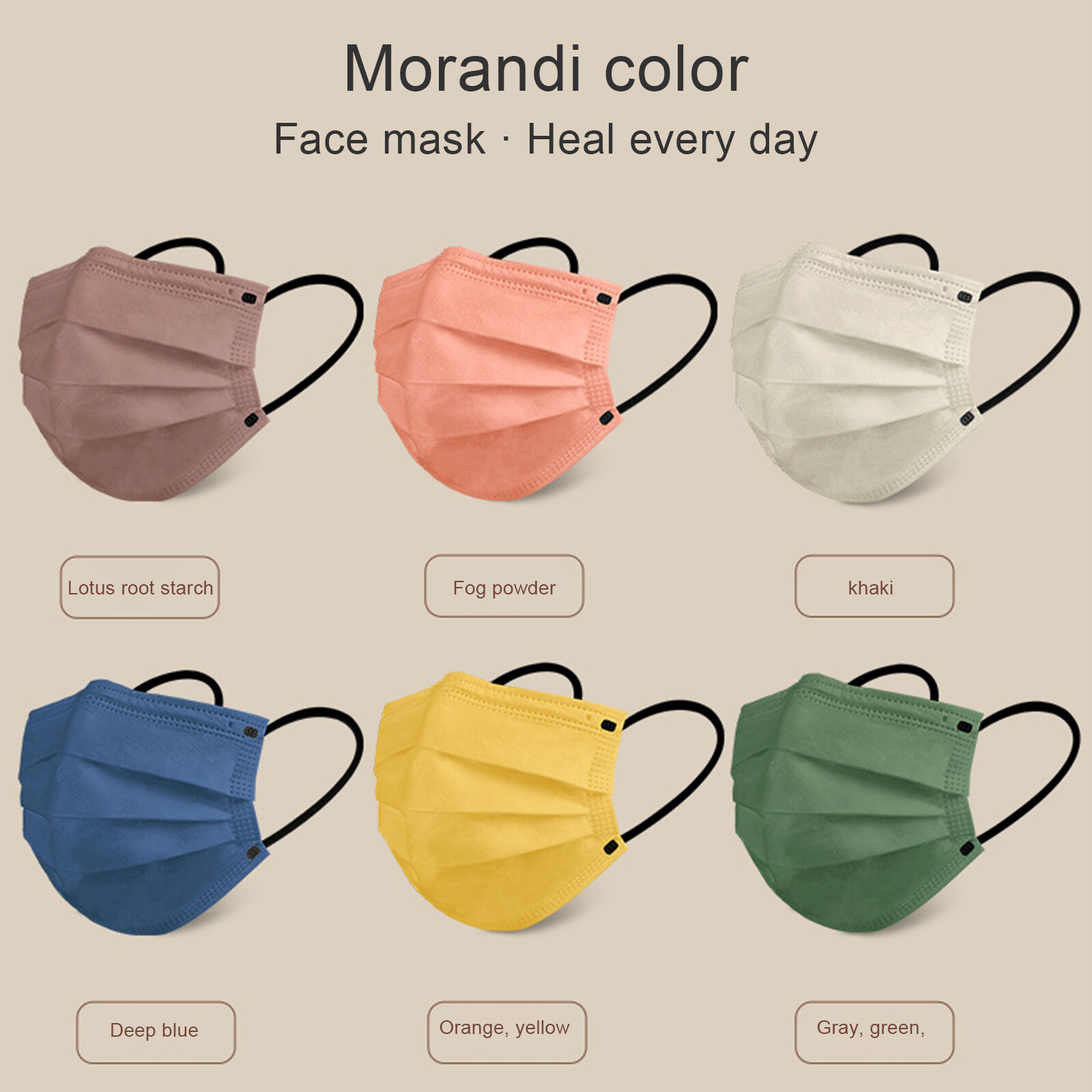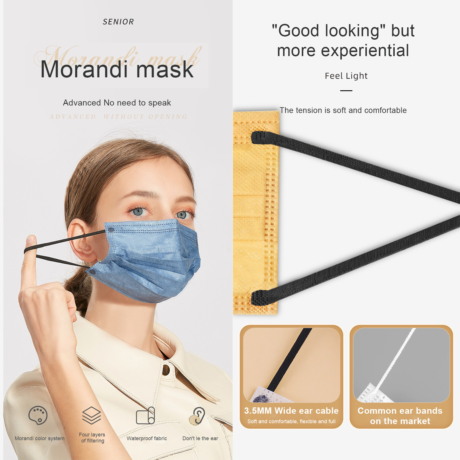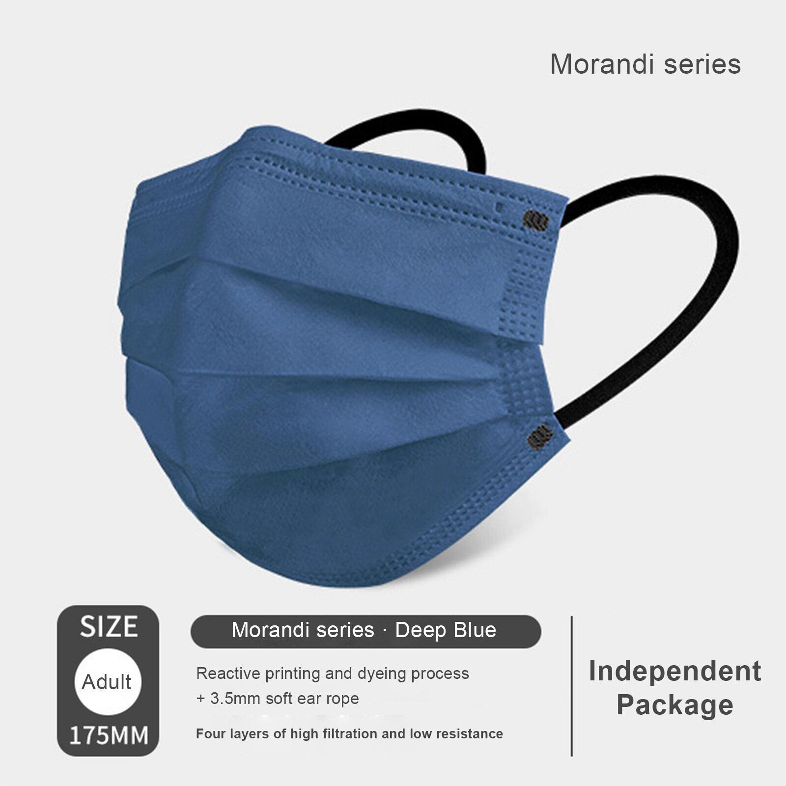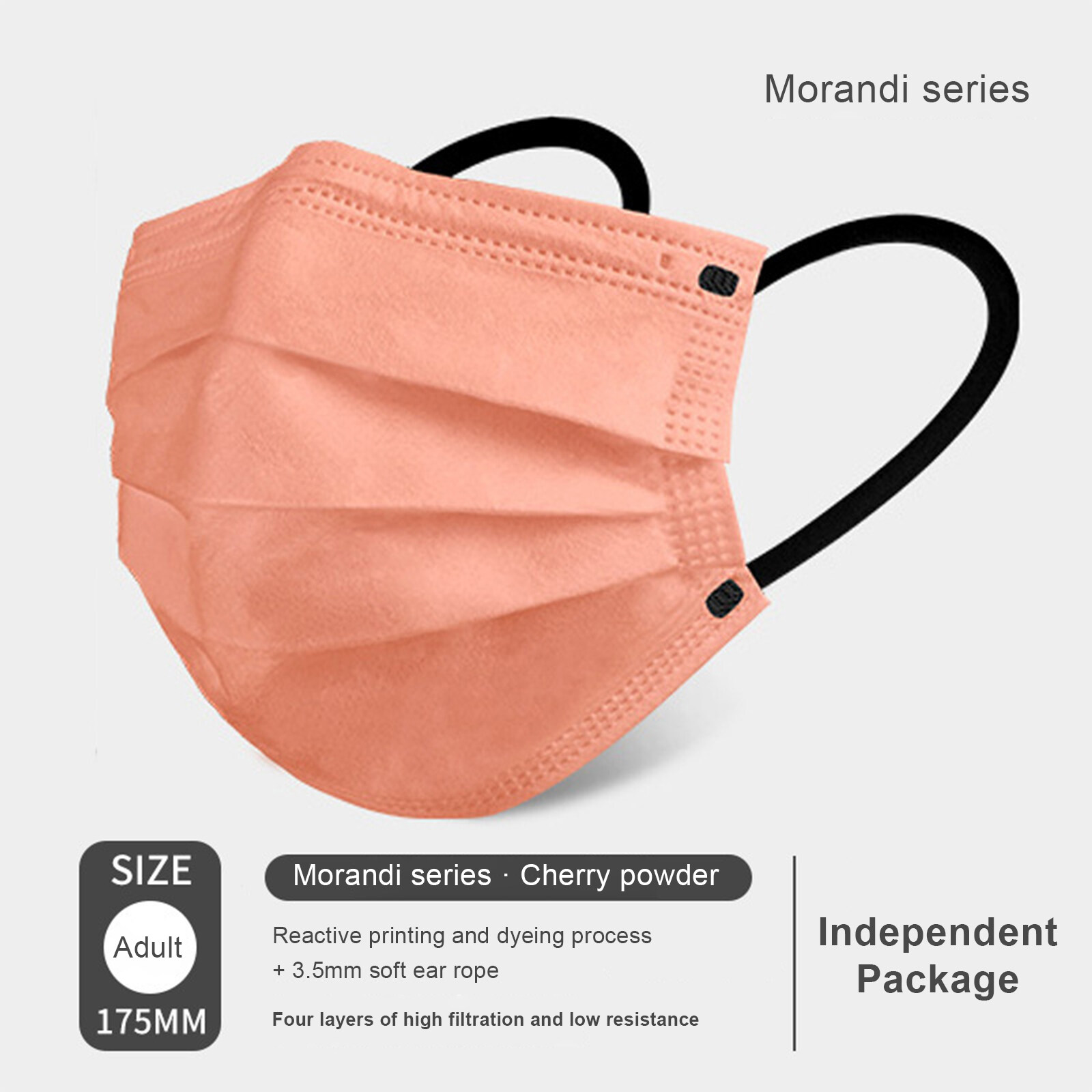 [EnidJuli] 10PCS Adult Mask 4Ply Morandi Disposable Face Mask Individually Packed Face Mask 3.5mm Anti-Strain Ear Straps Breathable Face Mask