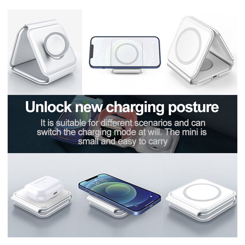 HOCE 3 in 1 15W Magnetic Wireless Charger for iPhone 13 12 11 Pro Max Apple Airpods Pro iWatch 7 6 5 4 3 2 SE Portable Foldable Fast Charging Dock