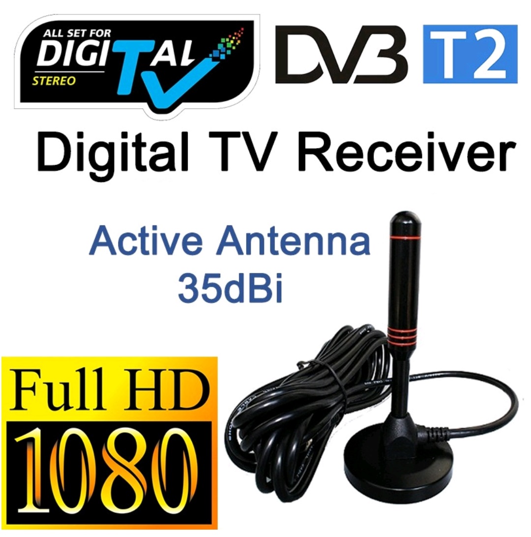 100% Copper Digital TV Antenna Active Antenna with dual Amplifier and USB Power Supply (35dBi/3 Meter Cable/USB Power)