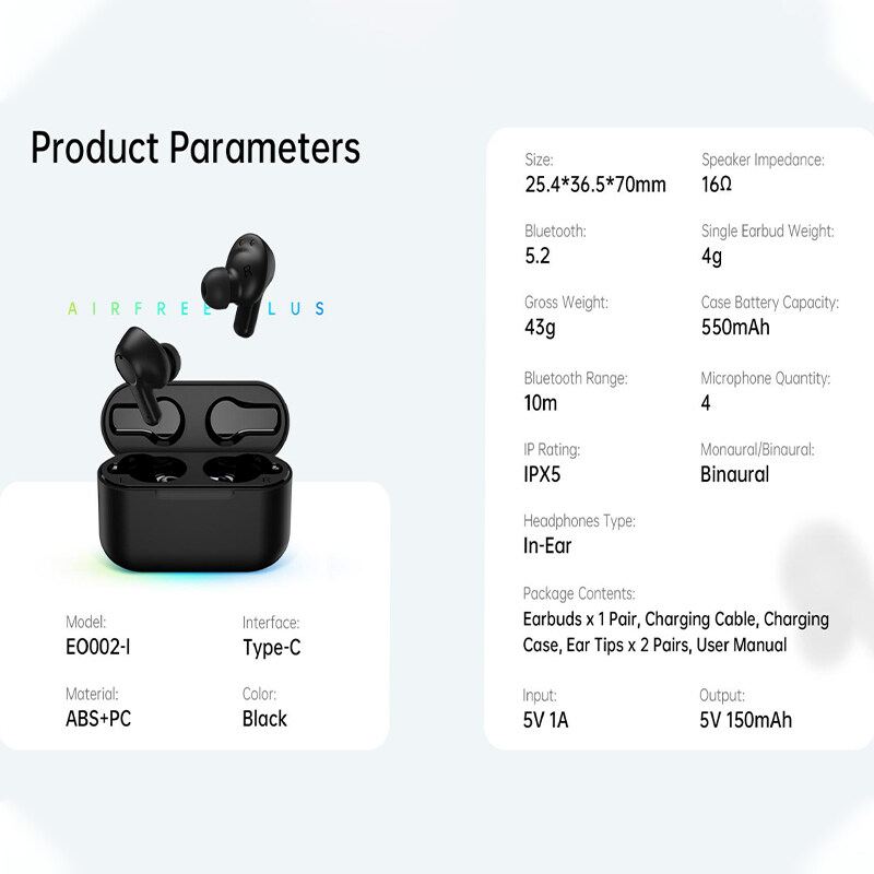 Original 1MORE Omthing AirFree Plus Earphones Bluetooth 5.2 Tws Wireless Headphones 4 Mic ENC Earbuds 7mm Dynamic 23 Hour Playtime Headset