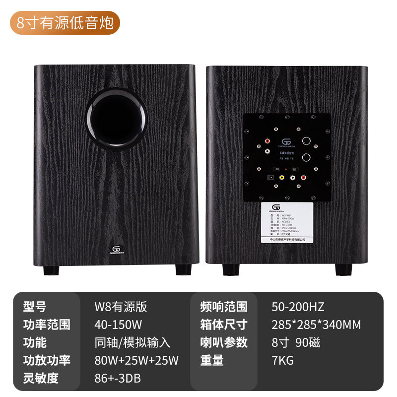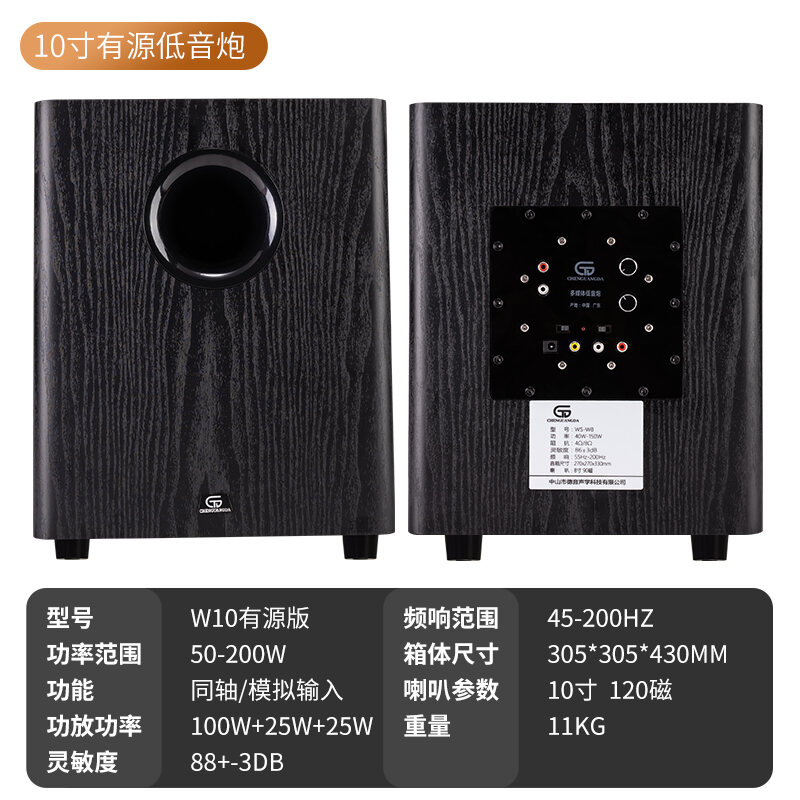 Subwoofer Home Subwoofer 10-Inch Active 8-Inch Passive Home Theater Computer Audio Wooden Speaker TV