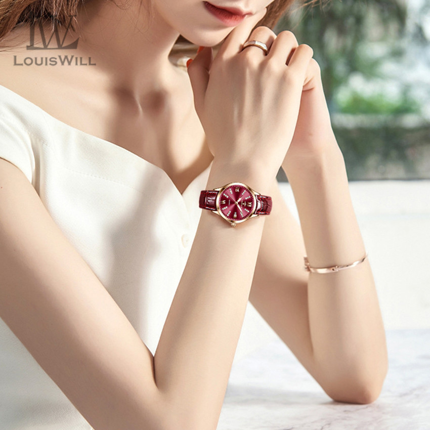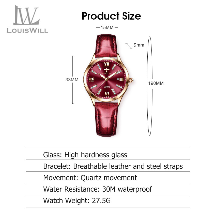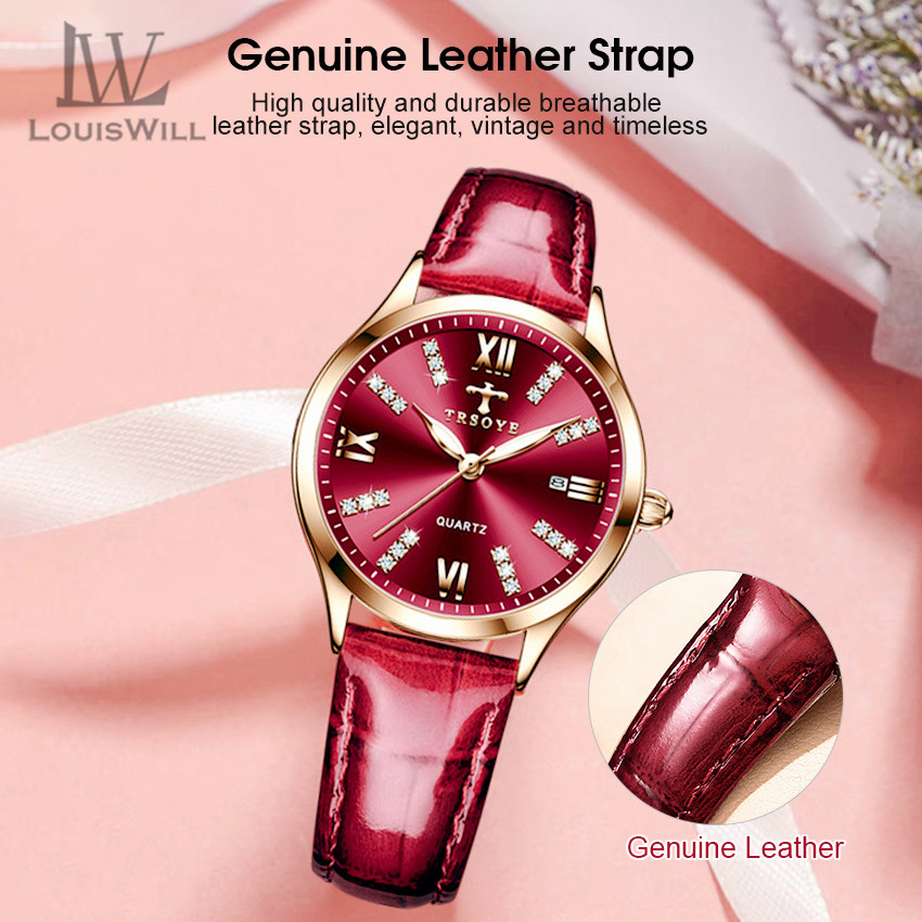 LouisWill Women Watches Diamond Casuals Retro Leather Strap Watches Quartz Watches Calendar Dial Luminous Pointer Watches 3ATM Waterproof Watches Business Wristwatch for Women Ladies